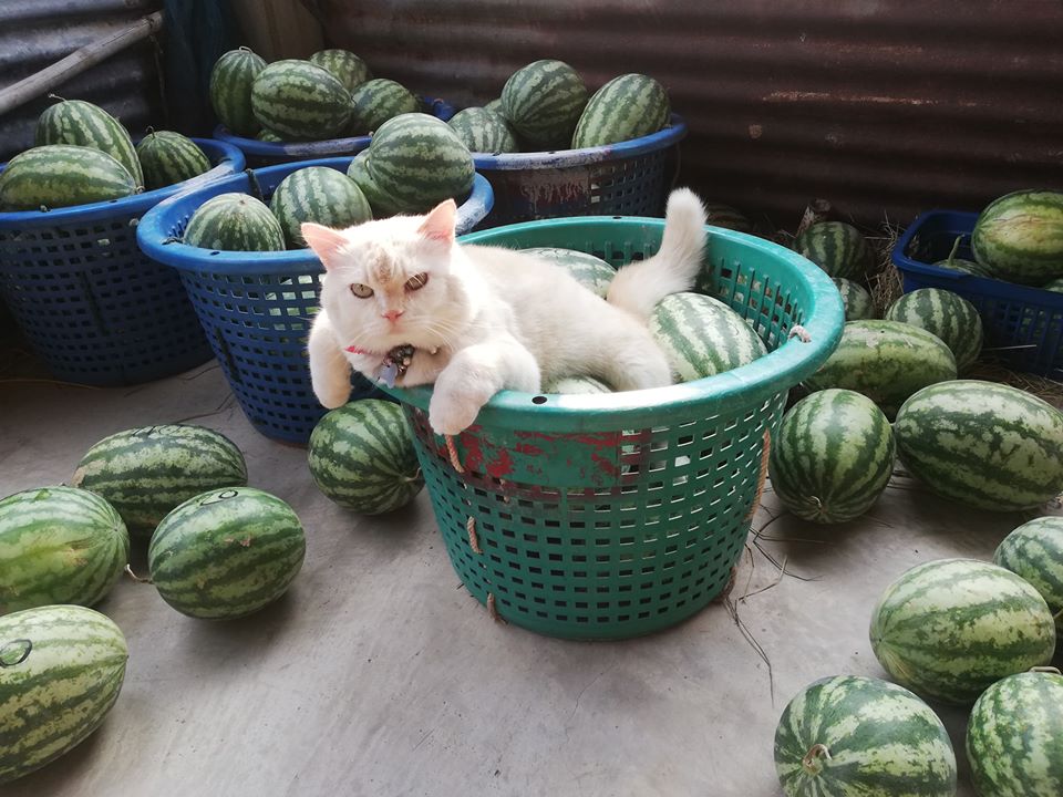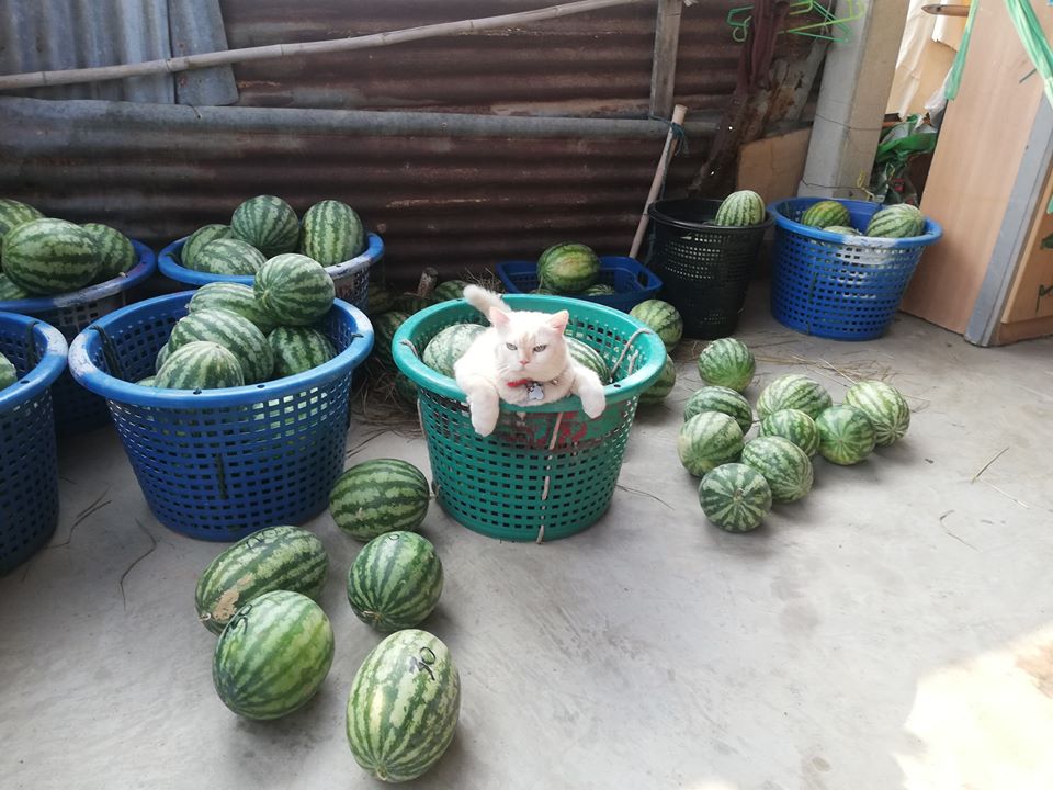 В Таиланде найден самый суровый охранник арбузов. Это кот по кличке Жемчужина, и с ним лучше не связываться!