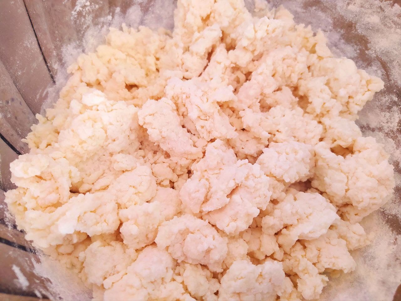 2. Добавить творог, соль, муку. Хорошенько перемешать.