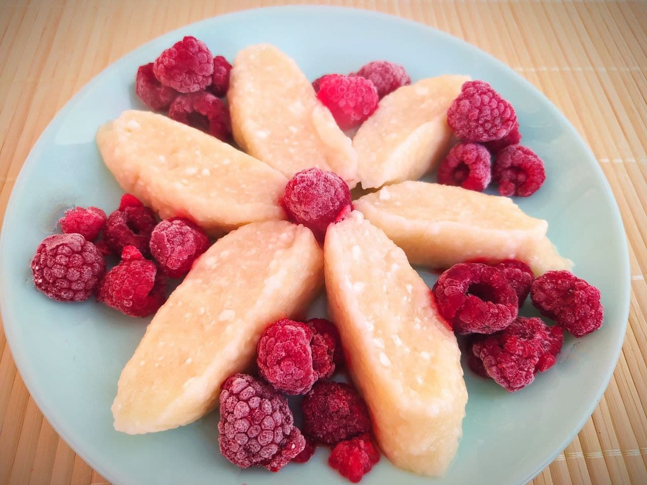 5. Погрузить дольки в кипящую воду. Варить несколько минут. Если вареники всплыли – значит, готовы.