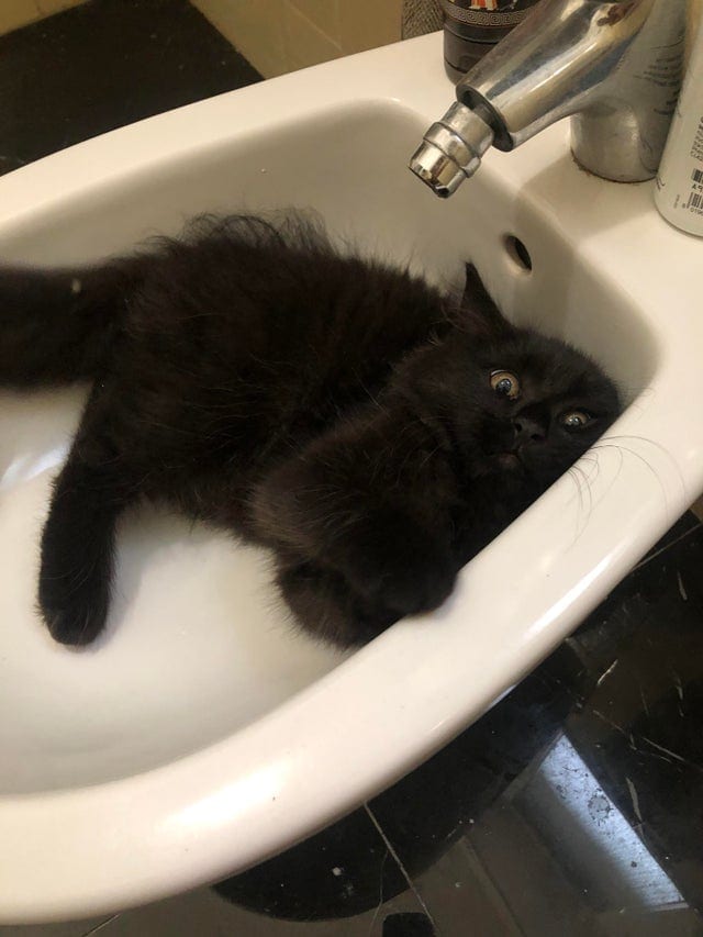 5. С таким выражением хозяйка обнаружила своего кота, когда включила свет в 6 утра.