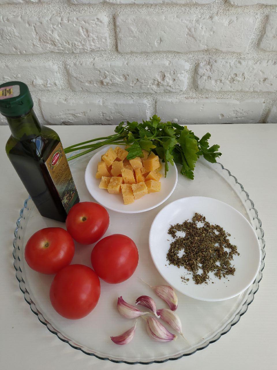 - оливковое масло (из расчета 0,5 ч. л. на кружок помидора);