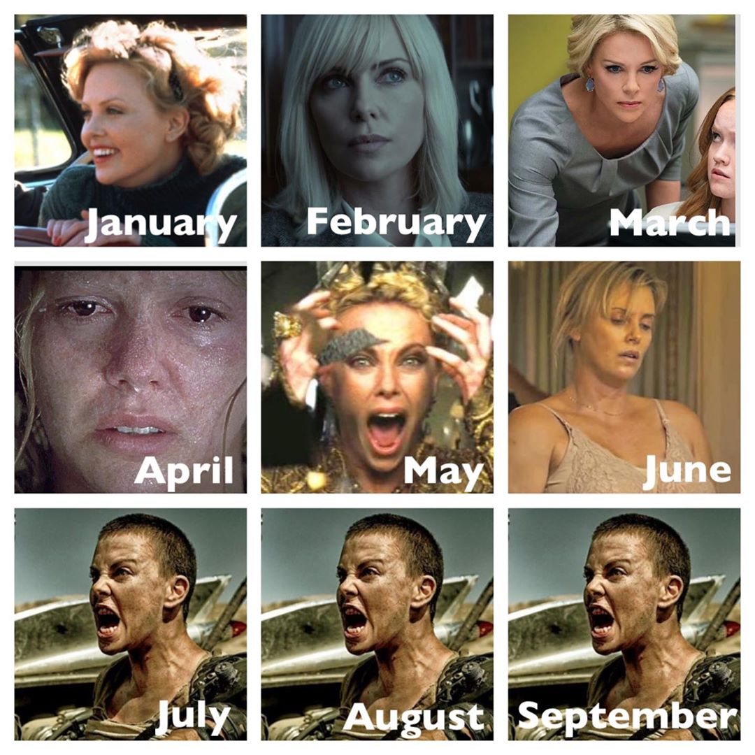 К шуточному флешмобу уже присоединились такие известные люди как Шарлиз Терон, Мишель Пфайффер, Марк Руффало, Кара Делевинь и другие. Все они показали, как радостные эмоции в начале года сменяются паникой, гневом или депрессией.