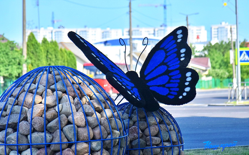 Гигантская бабочка прилетела? Красивую инсталляцию заметили на перекрестке в Барановичах – фотофакт