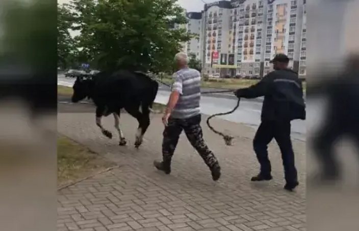 В ролике видно, как мужчины пытаются вывести корову из магазина с товарами для сада и огорода. Удалось набросить на шею животному веревку и выманить ее на улицу. Однако вскоре корова снова пыталась сбежать и в какой-то момент перешла на галоп, утверждает регионально издание «Вечерний Бобруйск».