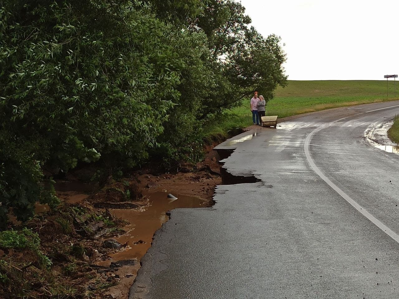 В Минской области, в частности в Столбцовском районе, выпал град. В Минском районе из-за нахлынувшей стихии обвалился участок дороги.