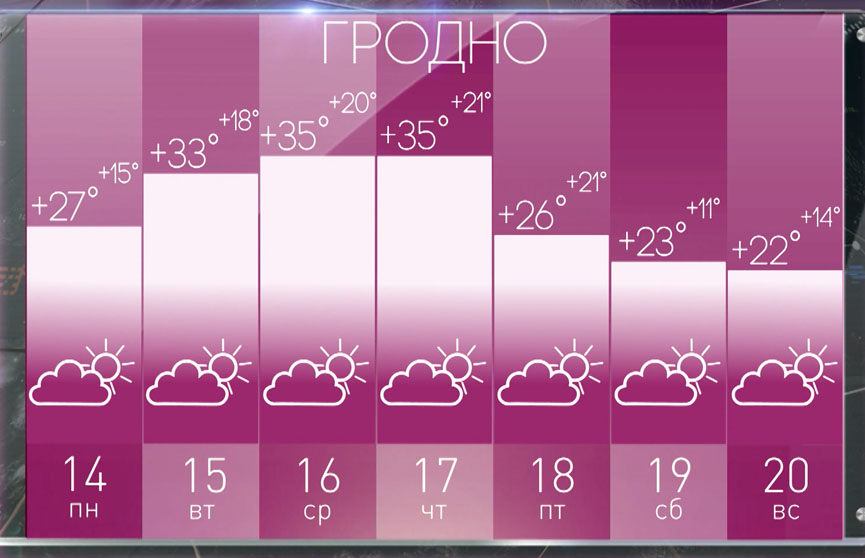Погода в Гродно на неделю с 14 по 20 августа: