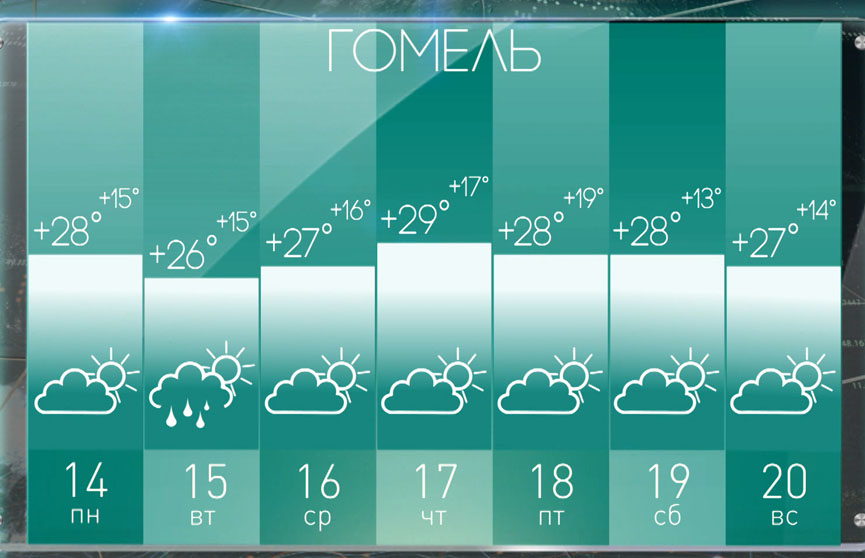 Погода в Гомеле на неделю с 14 по 20 августа: