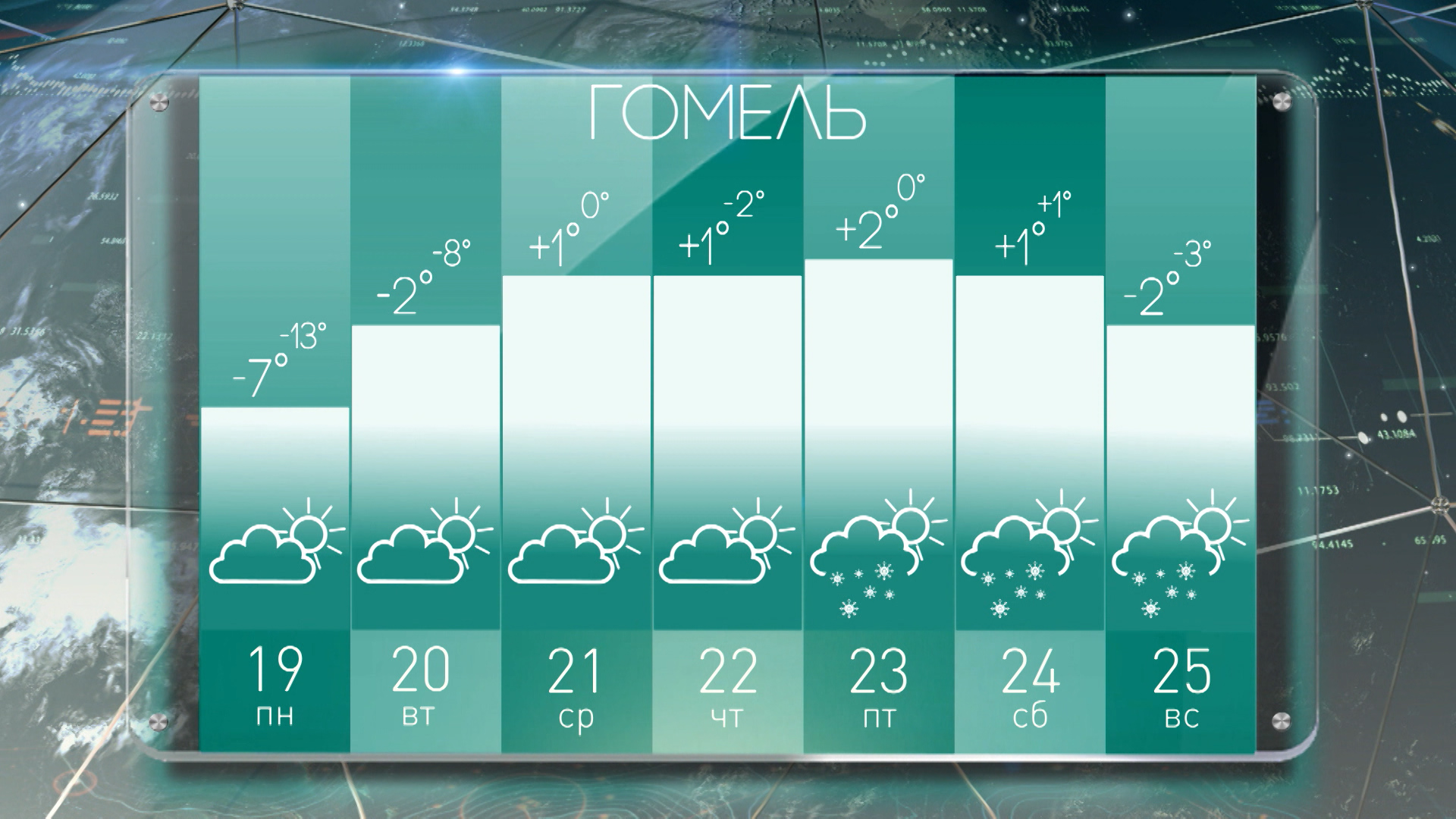 Погода в Гомеле на неделю с 19 по 25 декабря: