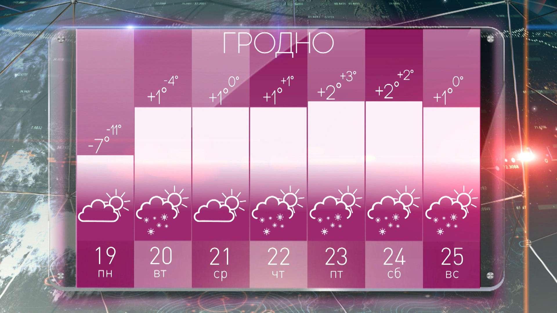 Погода в Гродно на неделю с 19 по 25 декабря: