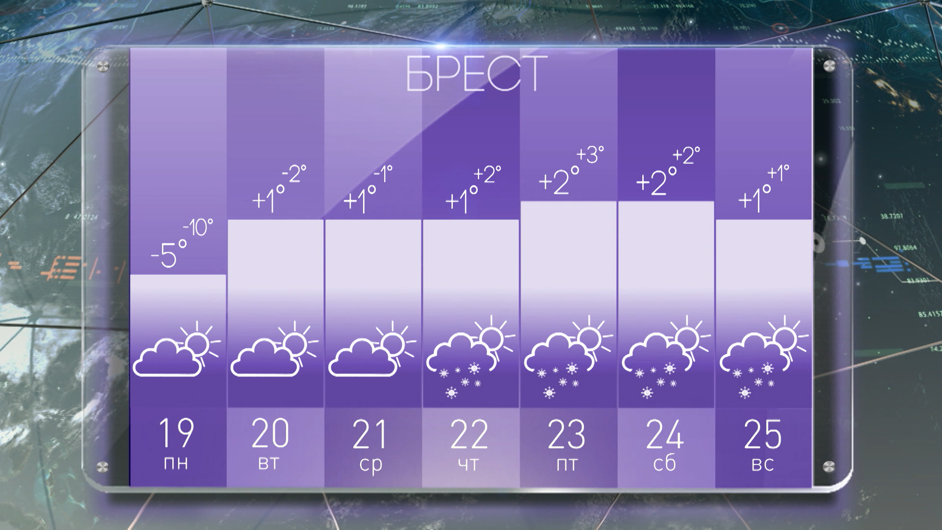 Погода в Бресте на неделю с 19 по 25 декабря: