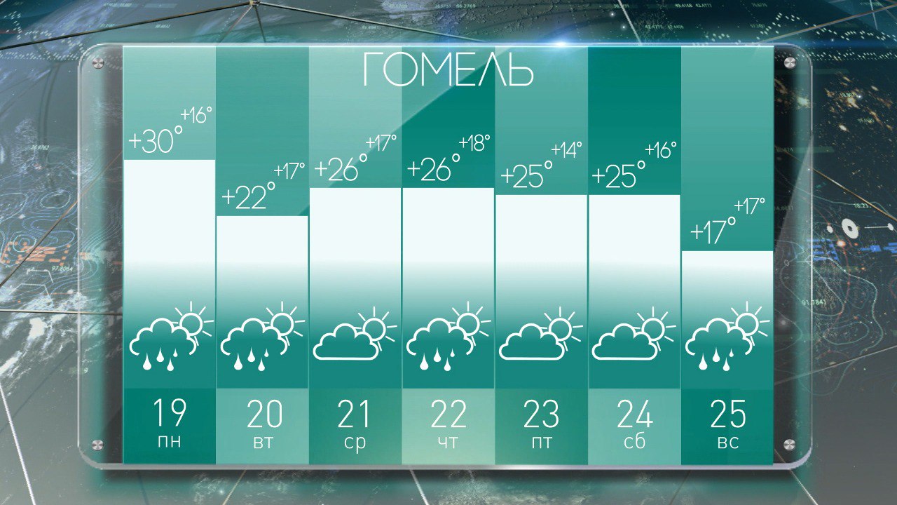 Погода в Гомеле на неделю с 19 по 25 июня: