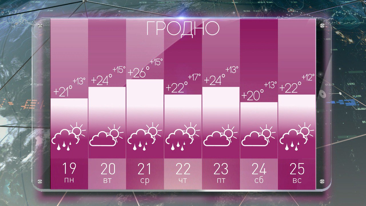 Погода в Гродно на неделю с 19 по 25 июня: