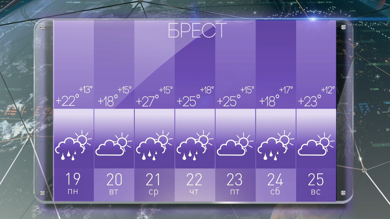 Погода в Бресте на неделю с 19 по 25 июня: