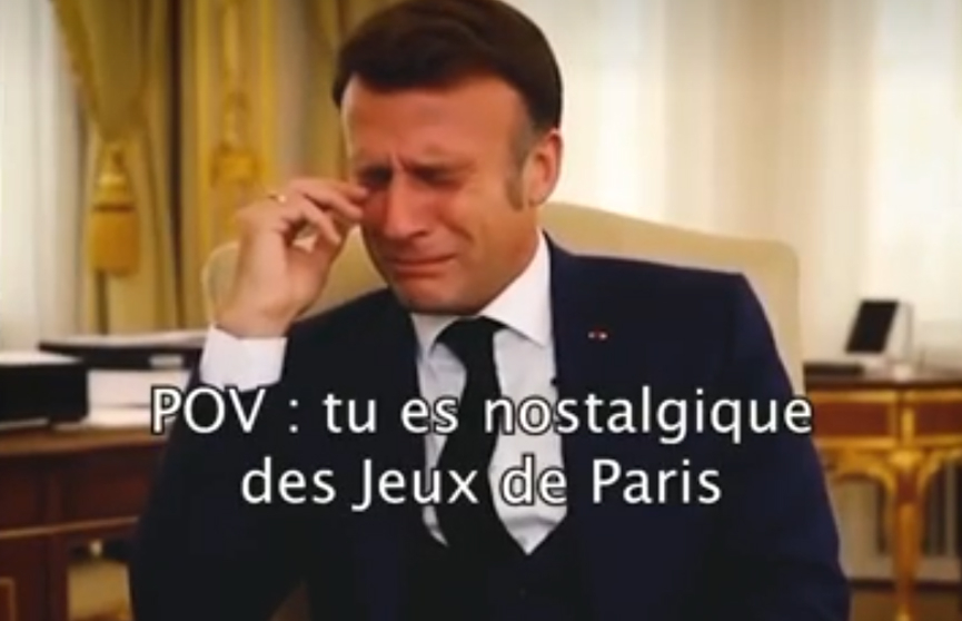 «Когда ты тоскуешь по [Олимпийским] играм в Париже», – гласит надпись, сопровождающая кадры плачущего президента.