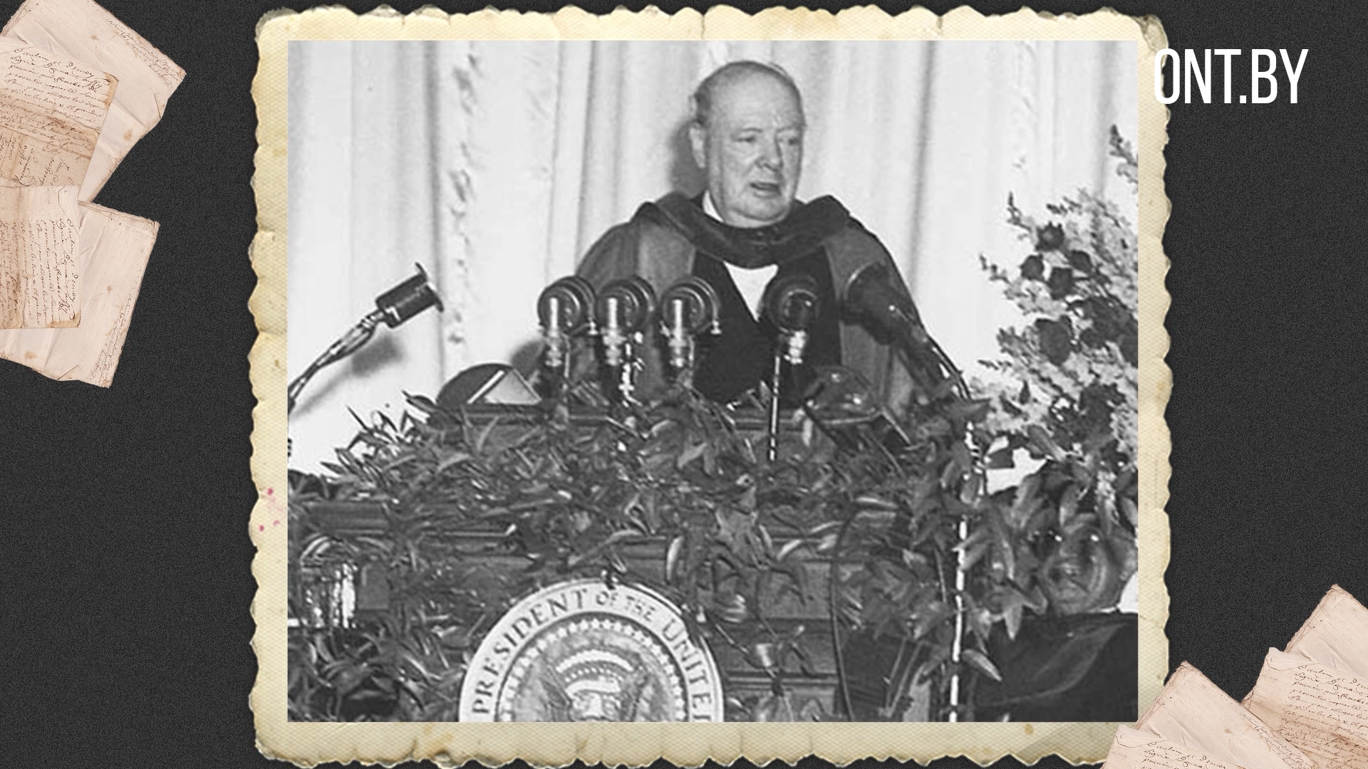 Этот термин Черчилль позаимствовал из передовицы Геббельса в газете «Дас Рейх» от 25 февраля 1945 года. По мнению политика, союз США и Великобритании должен был обеспечить превосходство над СССР. Фултонская речь дала старт началу «холодной войны».