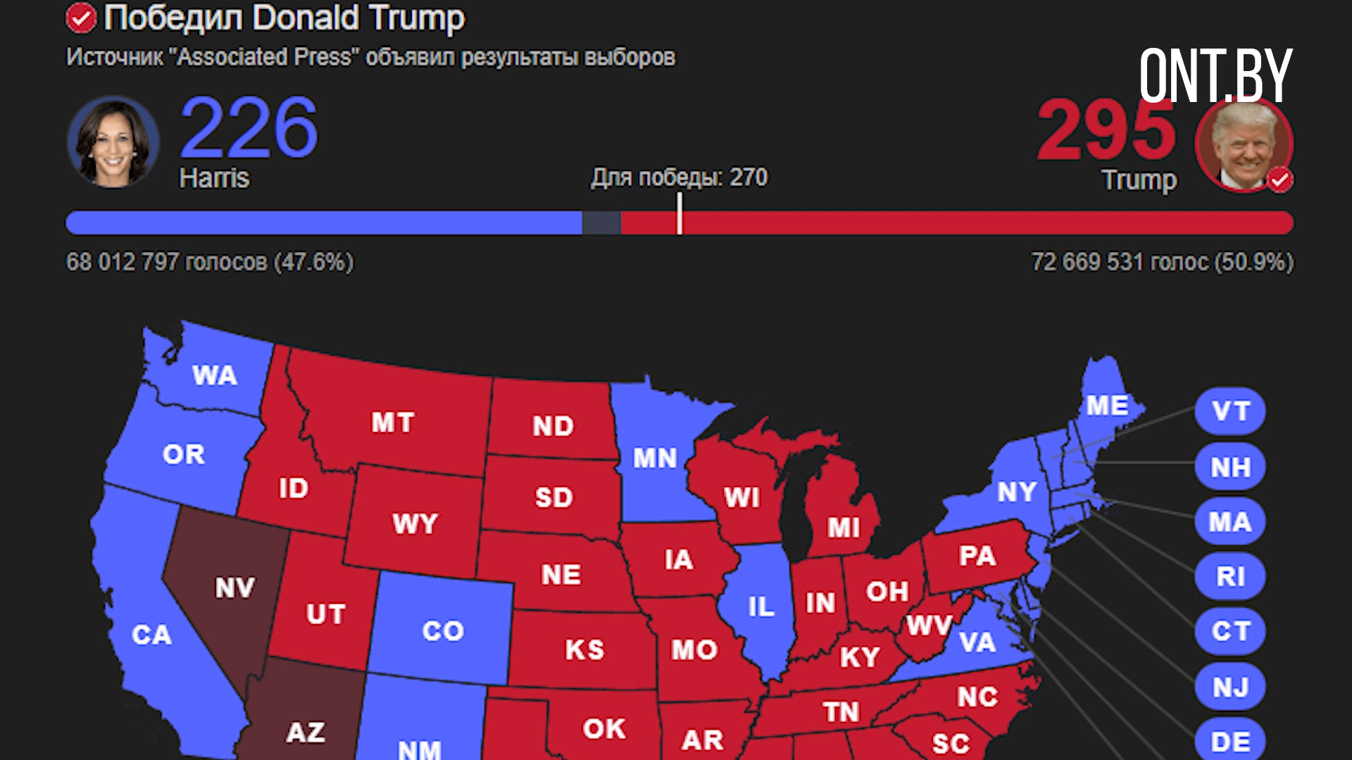 Подсчет голосов все еще продолжается, но уже сейчас можно с уверенностью сказать: у Харрис просто нет шансов. Побеждает Трамп. И кстати, эта победа безусловная. На выборах 2024 Трамп лидирует не только по количеству голосов выборщиков (а их для победы нужно набрать 270 из 538), но и на общенациональном голосовании. Перевес республиканцев составил около 5 млн голосов избирателей! Так что, ситуация 2016 года не повторилась. Напомню, тогда Хилари Клинтон набрала на 3 млн голосов больше, но проиграла в коллегии выборщиков, а значит и выборы вообще.