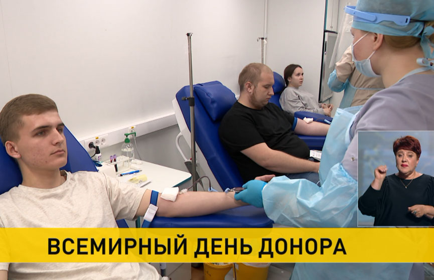 Всемирный день донора! С первой процедуры по переливанию прошло более века. И с тех пор число желающих добровольно помочь людям постоянно растет, в том числе в Беларуси. Утром передвижной мобильный комплекс развернулся в Минске у Минздрава.