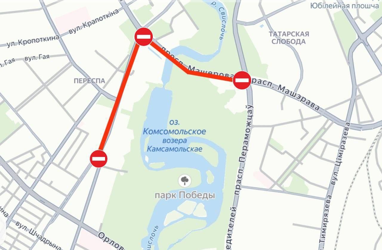 Движение будет ограничено с 21:00 до 00:00 по Старовиленскому тракту и улице Даумана, а с 22:00 до 00:00 – на участке проспекта Машерова от проспекта Победителей до улицы Даумана.