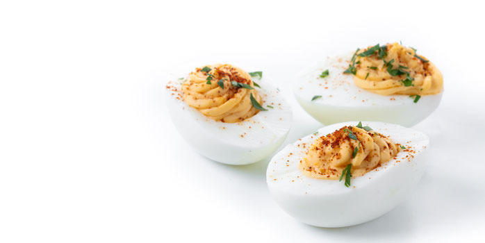 Для приготовления данной закуски понадобятся 10-12 отварных куриных яиц.