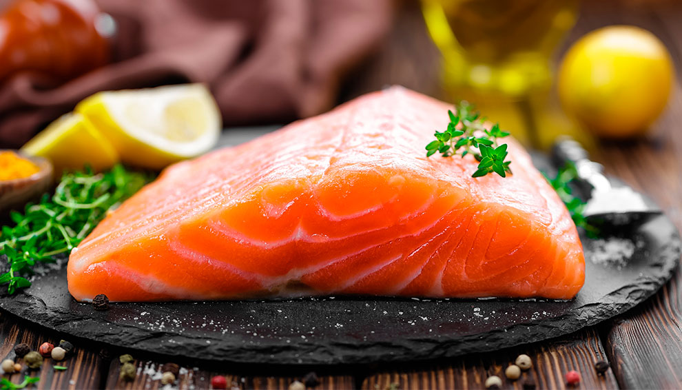 6. Лосось. Это самый оптимальный вариант белкового приёма пищи, поскольку в нём содержатся витамины D и А, а также очень важные элементы группы В — витамины B3, В6, B7 и В12.