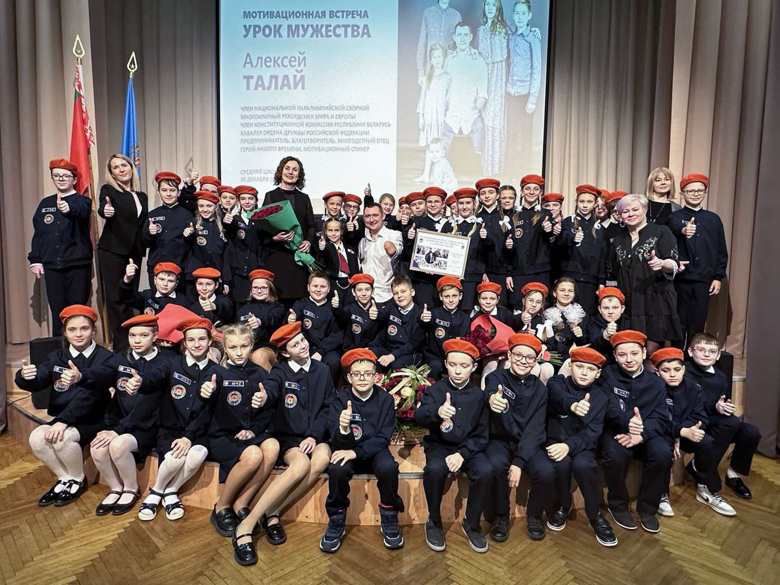 В рамках своего авторского проекта «Урок мужества» общественный деятель, спикер, учредитель благотворительного фонда Алексей Талай провел встречу с учащимися средней школы №34 г. Минска.