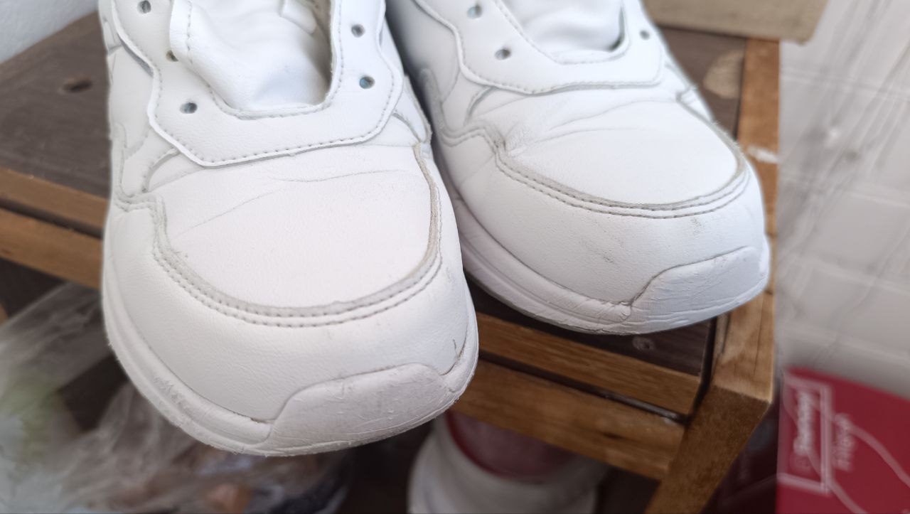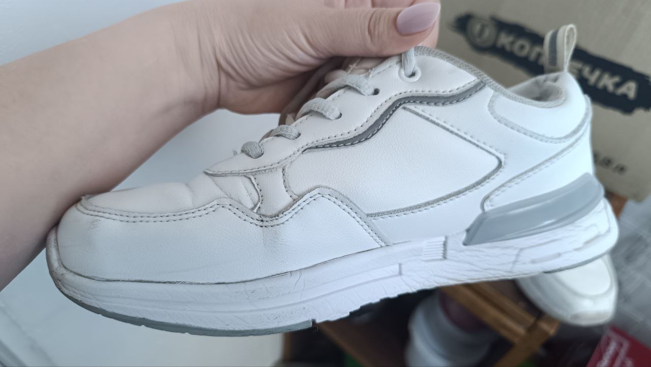 Наносить его нужно на сухую обувь чистой сухой губкой. Для подошвы можно использовать старую зубную щетку. Кроссовки начнут белеть на глазах. Более того, средство поможет убрать мелкие царапины.