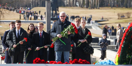 По традиции, первым к вечному огню возложили венок от Главы государства. Деревня под Минском стала символом ужасных, бесчеловечных пыток фашистов. И белорусы это помнят. Склонив головы, цветы и венки несут от мала до велика. 22 марта 1943-го в Хатыни звучали выстрелы и крики. Сегодня – только колокольный звон, который разносится над этим скорбным местом. В нем – напоминание, что трагедия Хатыни – это не частный эпизод Великой Отечественной, а масштабная политика геноцида.