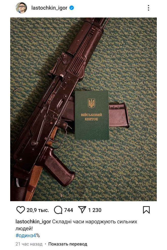 Звезда команды КВН «Сборная Днепропетровска» и шоу «Однажды в России» Игорь Ласточкин в своих соцсетях намекнул, что вступил в ряды ВСУ.