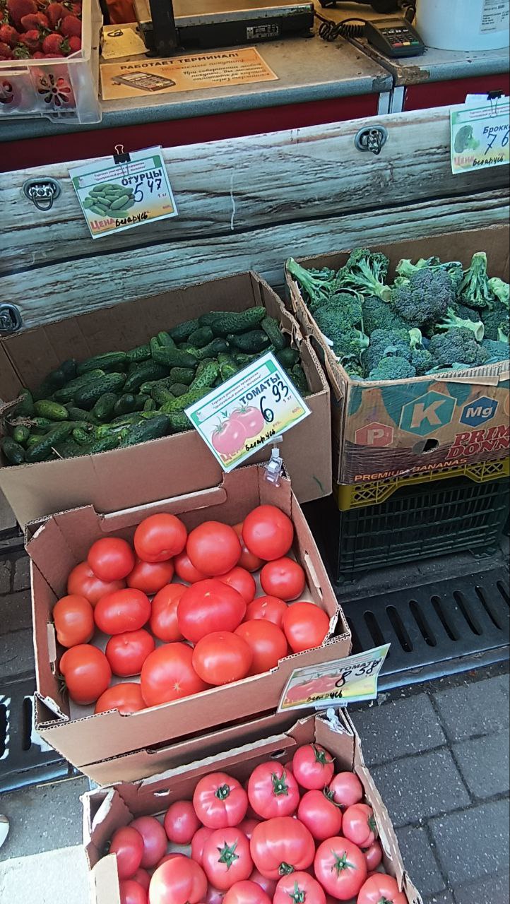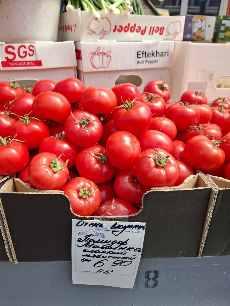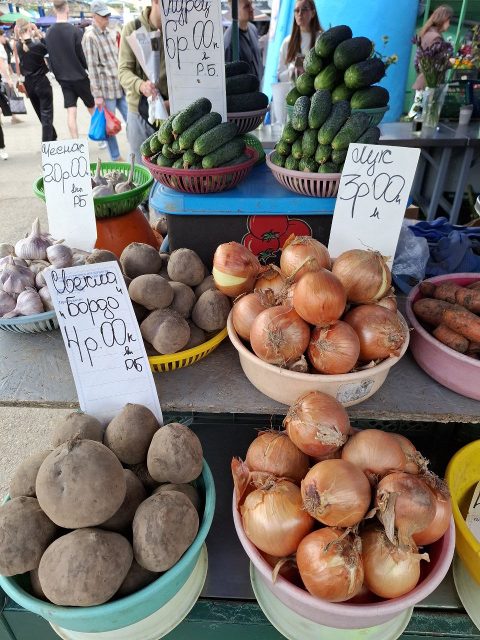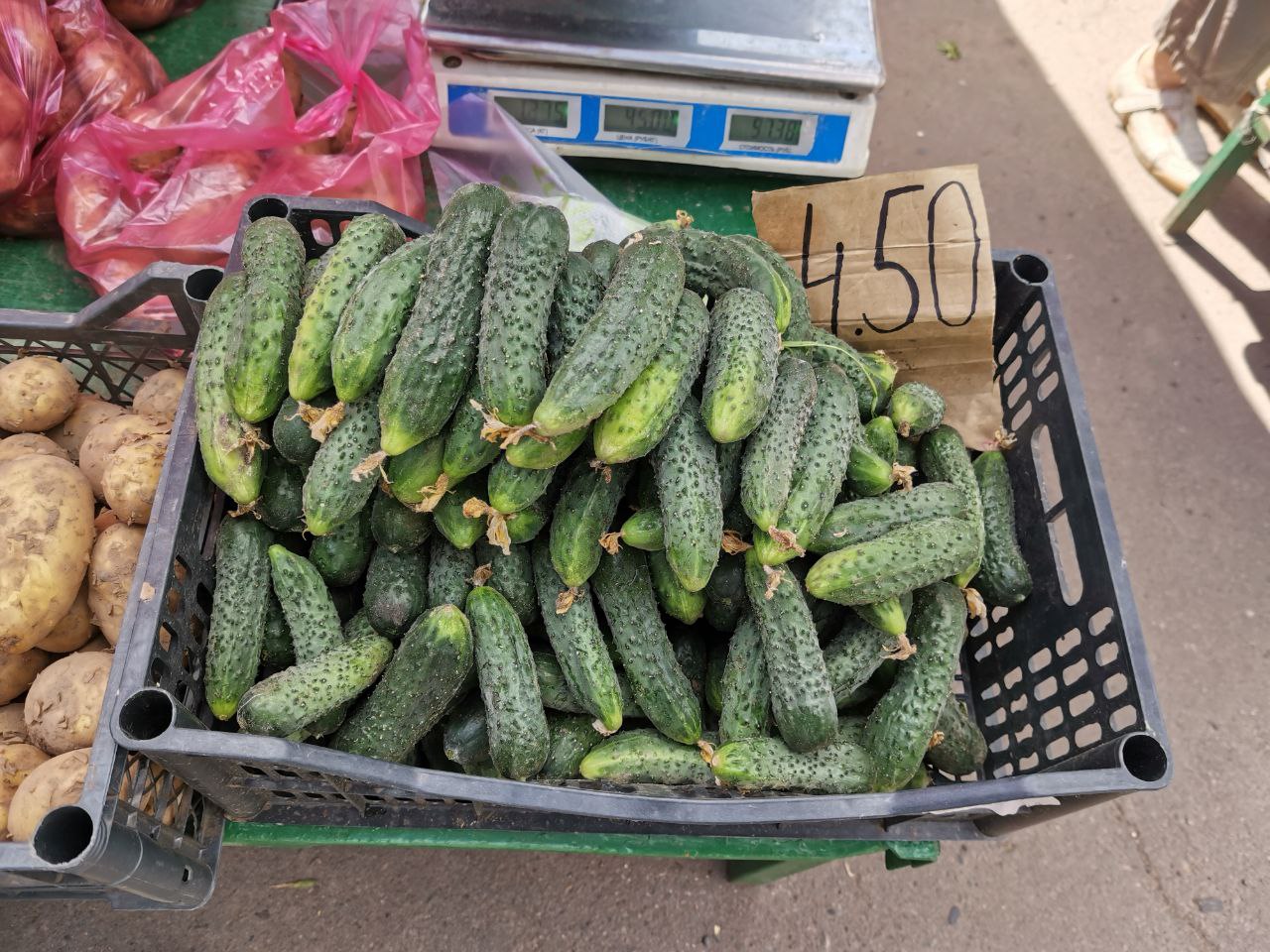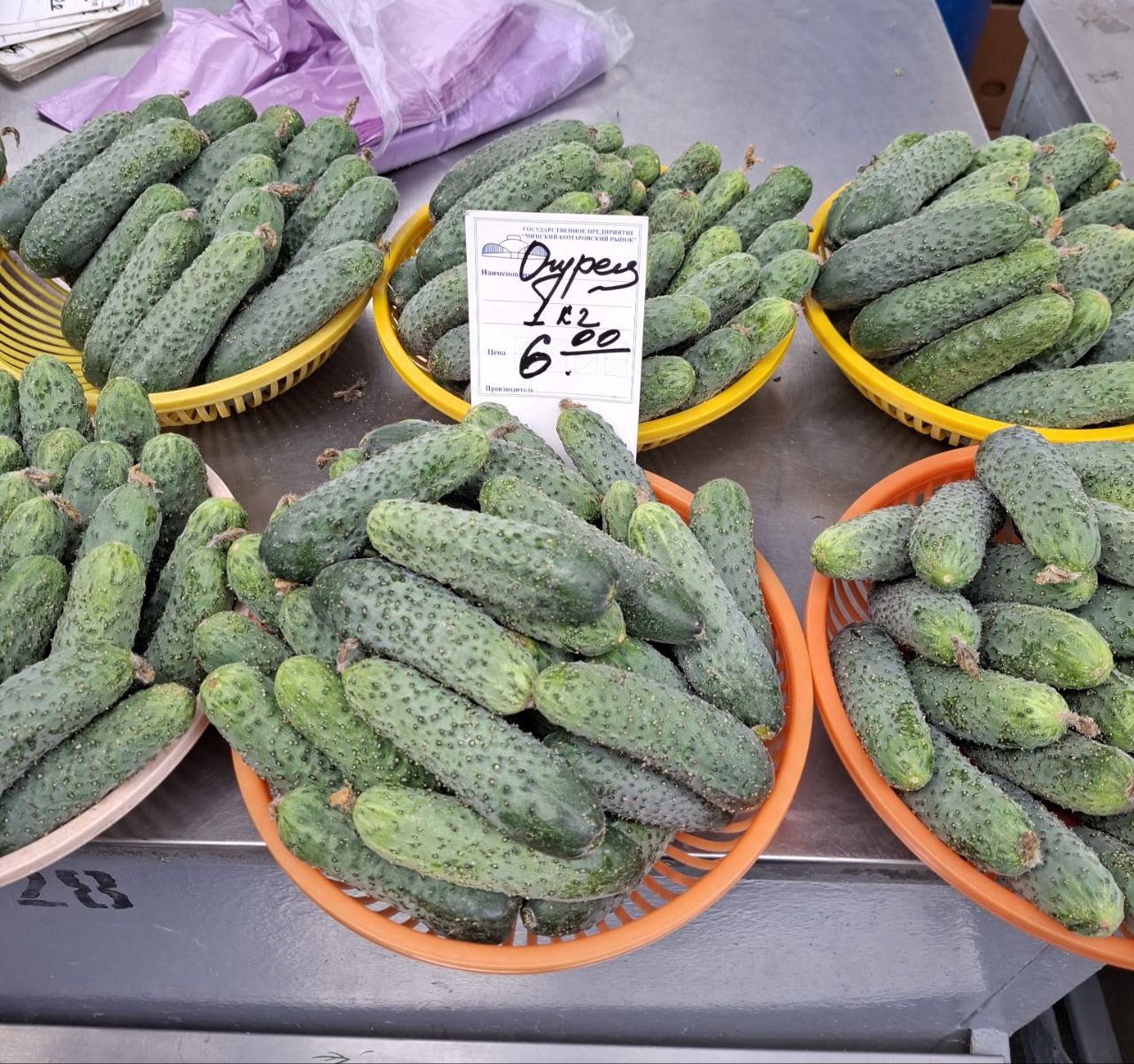 Молодой лук стоит 3р. – 4р./кг, капуста – 2,50р. – 3р./кг, помидоры – 6,50р. – 20р./кг. Уменьшилась стоимость огурцов – можно найти по 3р./кг и фермерские по 6р./кг. Ранее они были по 6р. – 10р./кг.