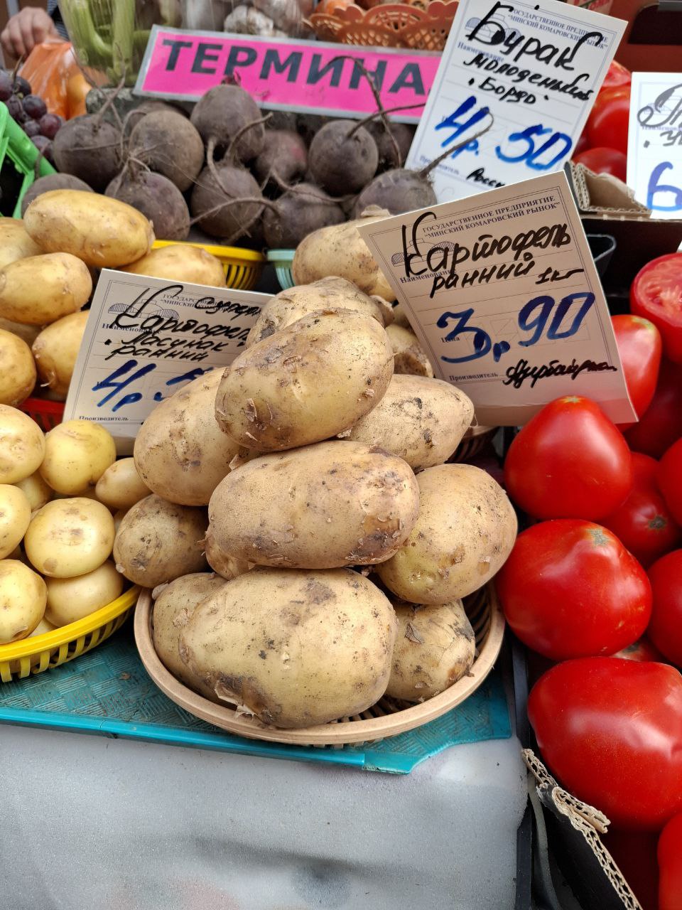 Снизились и цены на картофель. Если пару недель назад за молодой урожай из Азербайджана просили 5р. – 8р./кг, то сейчас – 4р./кг. Вовсю продается и белорусская бульба – 3,50р. – 5р./кг.