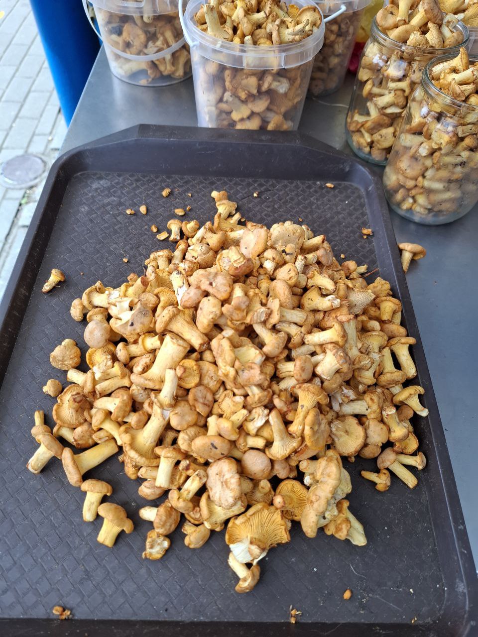 Из новой сезонной продукции в продаже появилась вишня по 13р. – 16,90р./кг, первая черника по 30р./кг, красная смородина – 20р./кг, шелковица стоит 15р./ 150г. За 200 г ежевики просят 25р., свежая малина стоит также. Впервые в этом сезоне на прилавке видим лесную землянику по 15р. за стакан. Грибной сезон на рынке открыли лисички по 20р. за литр. Для сравнения: в Могилеве они стоили 15р./кг.