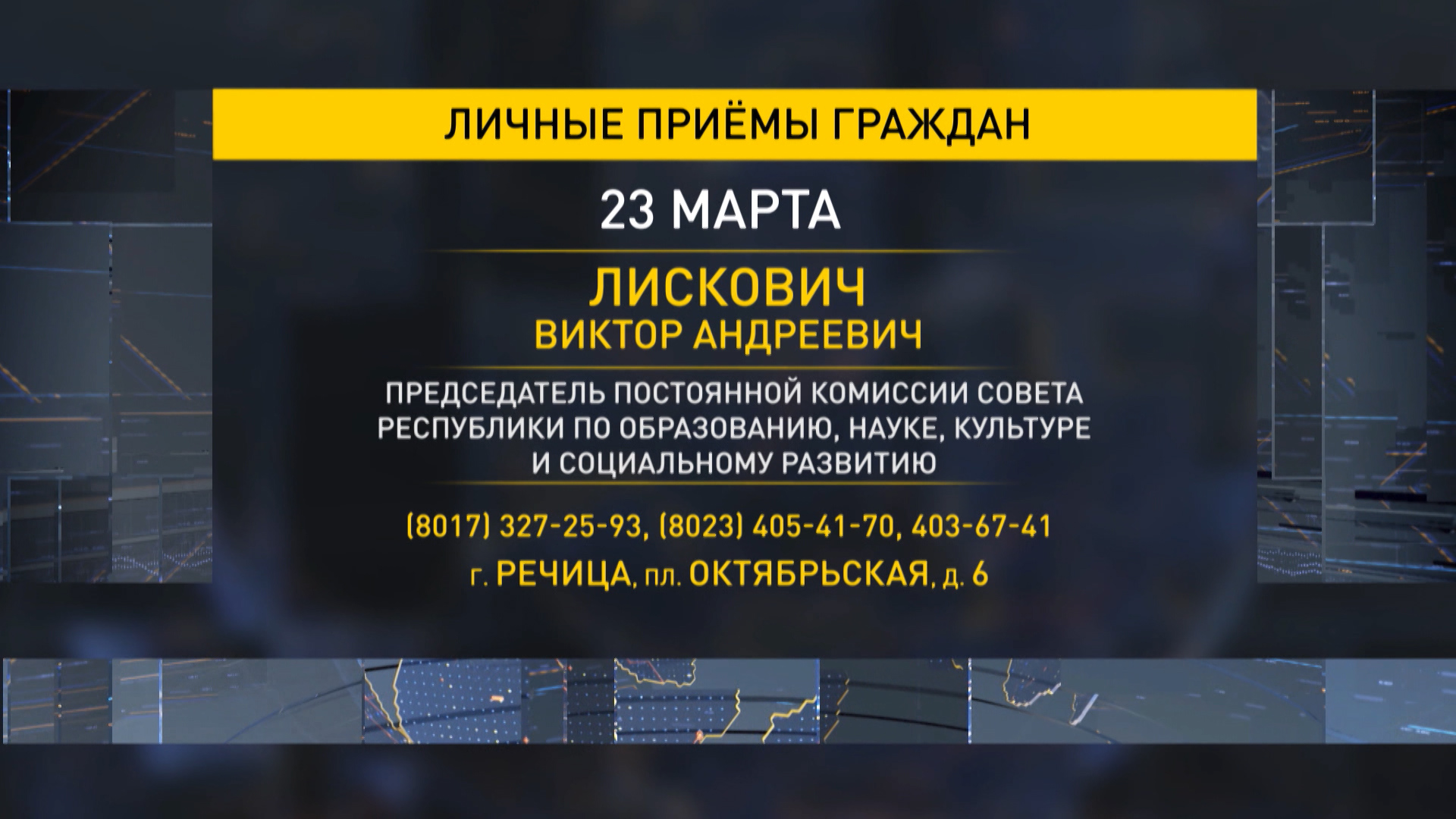 23 марта члены Совета Республики Национального собрания Беларуси проведут единый день приема граждан в Гомельской области.