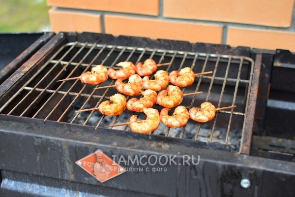 Используя решетку для барбекю, обжарьте креветки на углях с двух сторон до легкой корочки. На это понадобится примерно 3-4 мин. Главное – не передержите креветки, иначе они станут жесткими. Готовое блюдо посыпьте мелко порубленным укропом и зеленым луком.