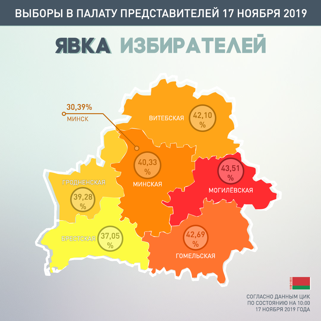 Явка избирателей на выборах депутатов Палаты представителей на 10.00 составила 38,86%. Об этом сообщает ЦИК.