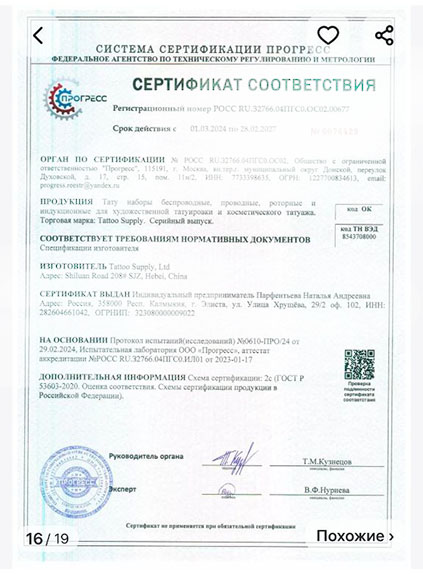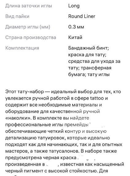 Сразу уточняем – никаких документов, подтверждающих качество товара, в его карточке нет. Но в комментариях продавец утверждает, что краска и иглы подходят для кожи человека, причем краска – самая лучшая на профессиональном рынке.