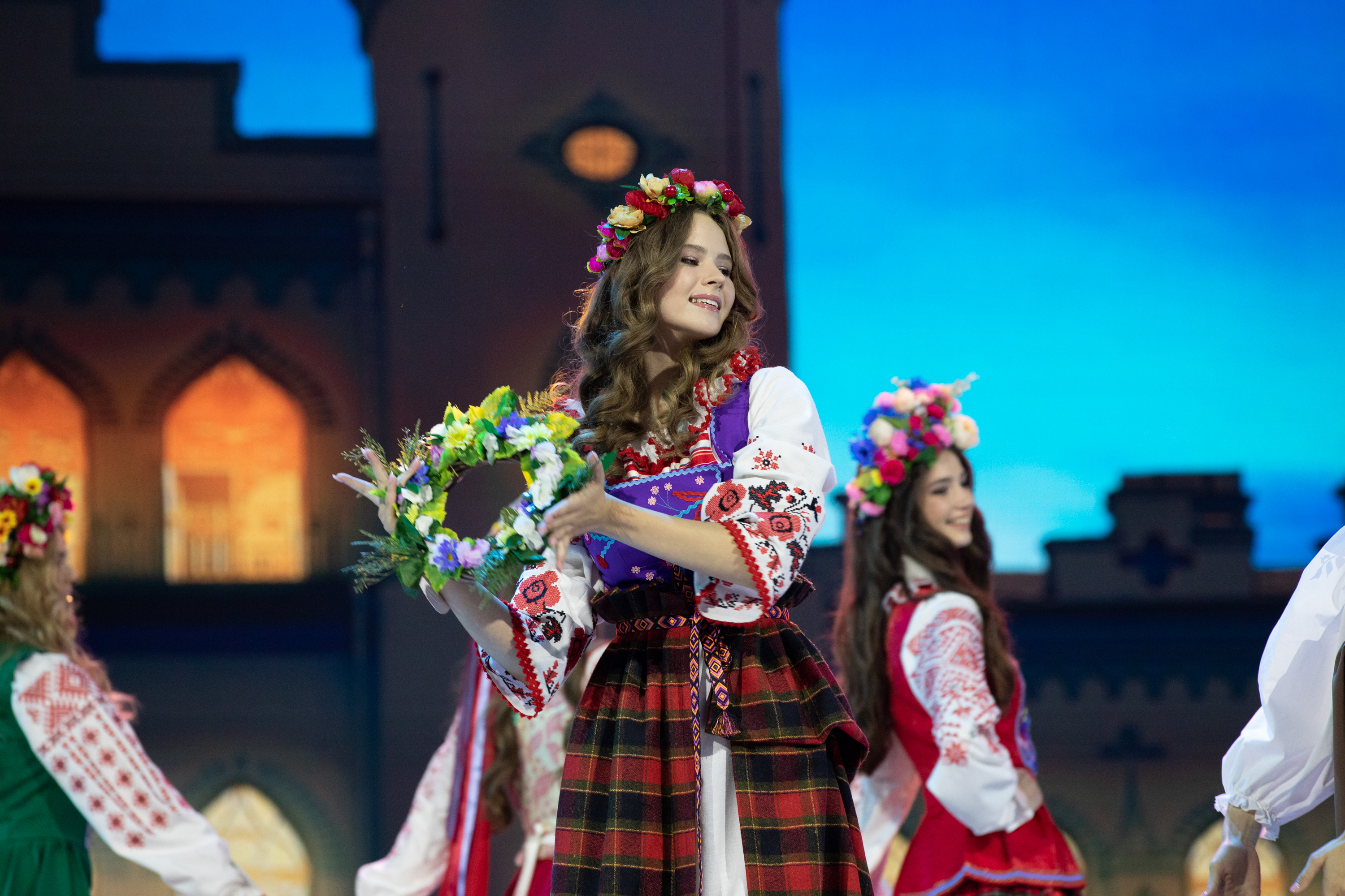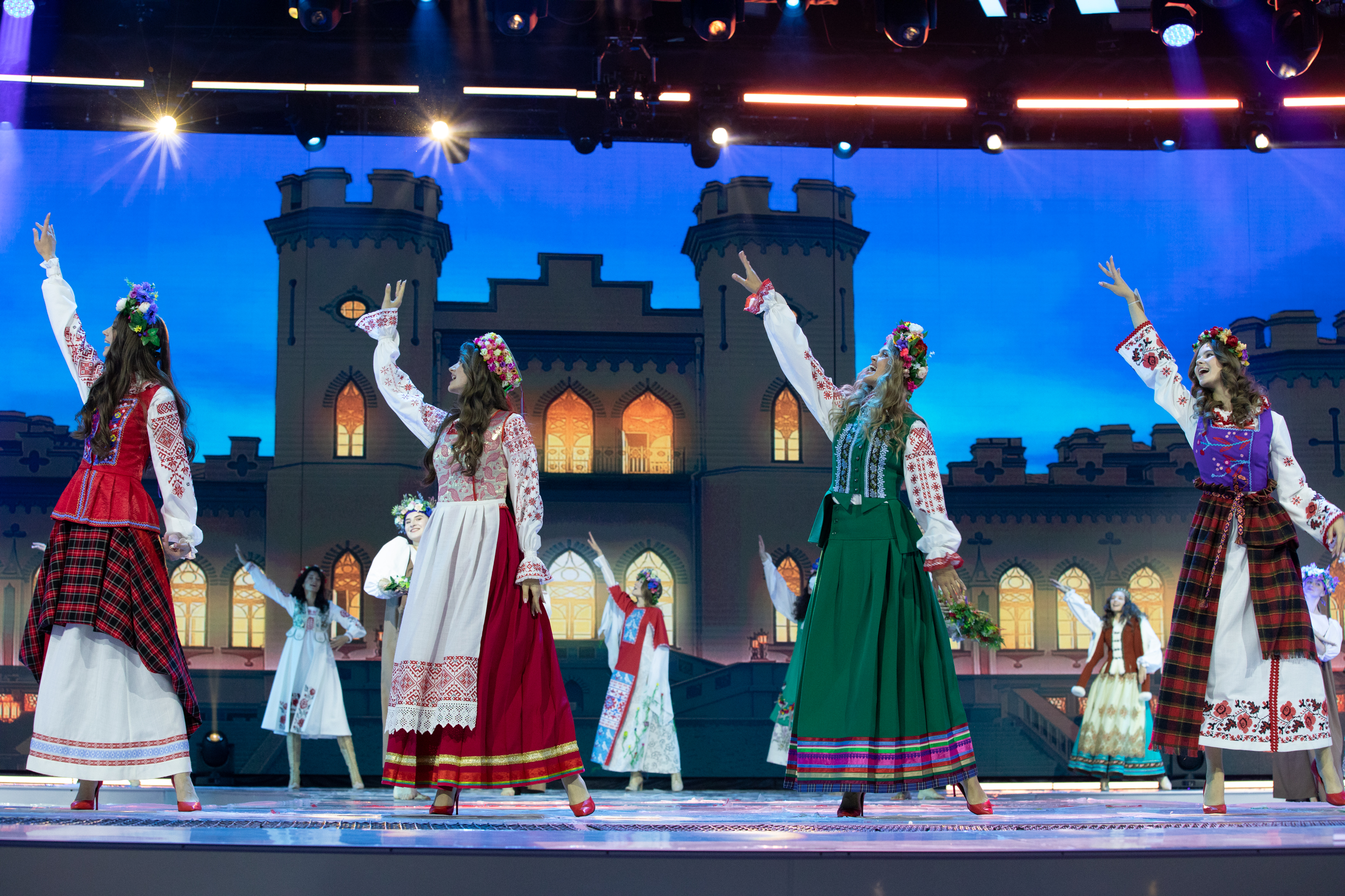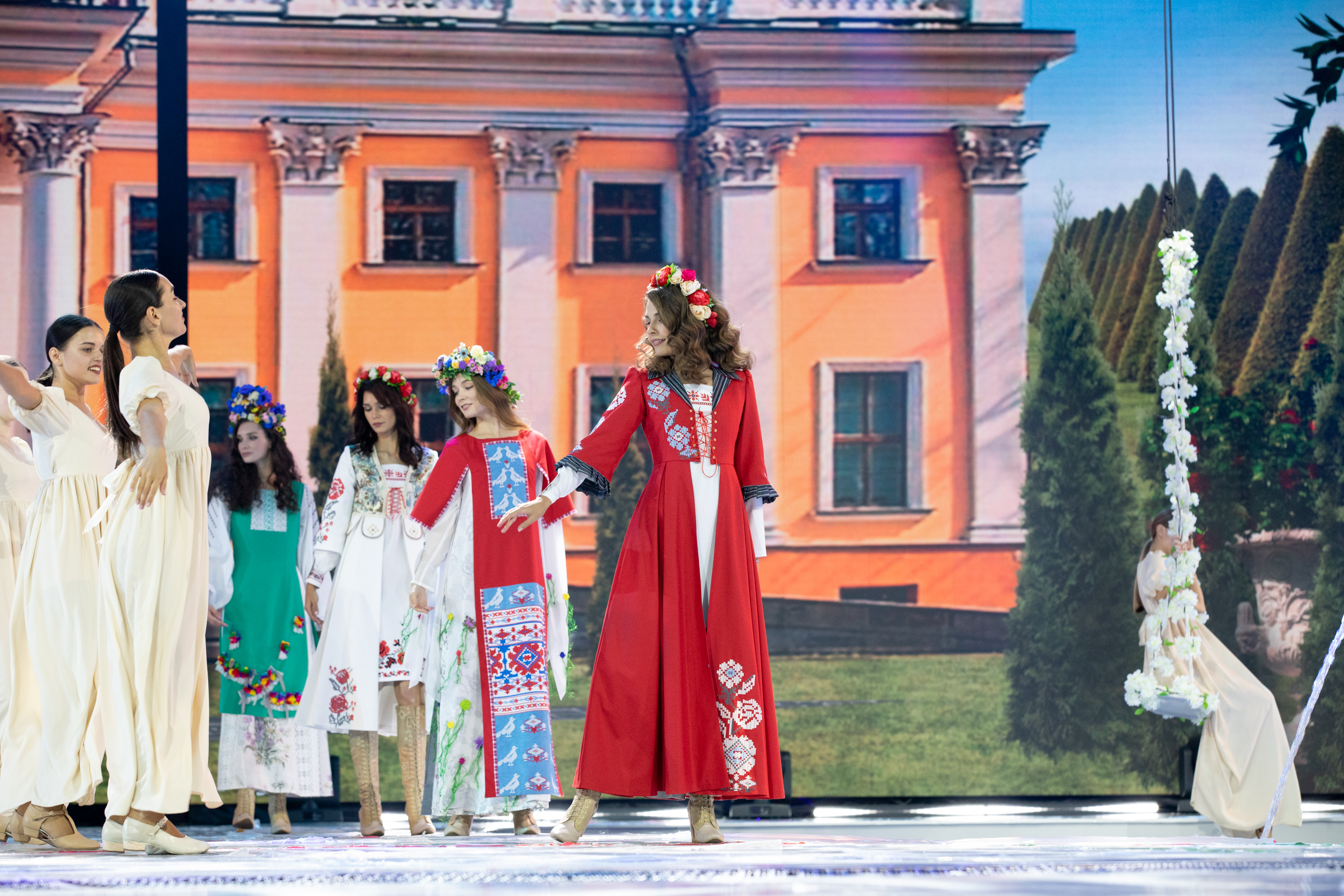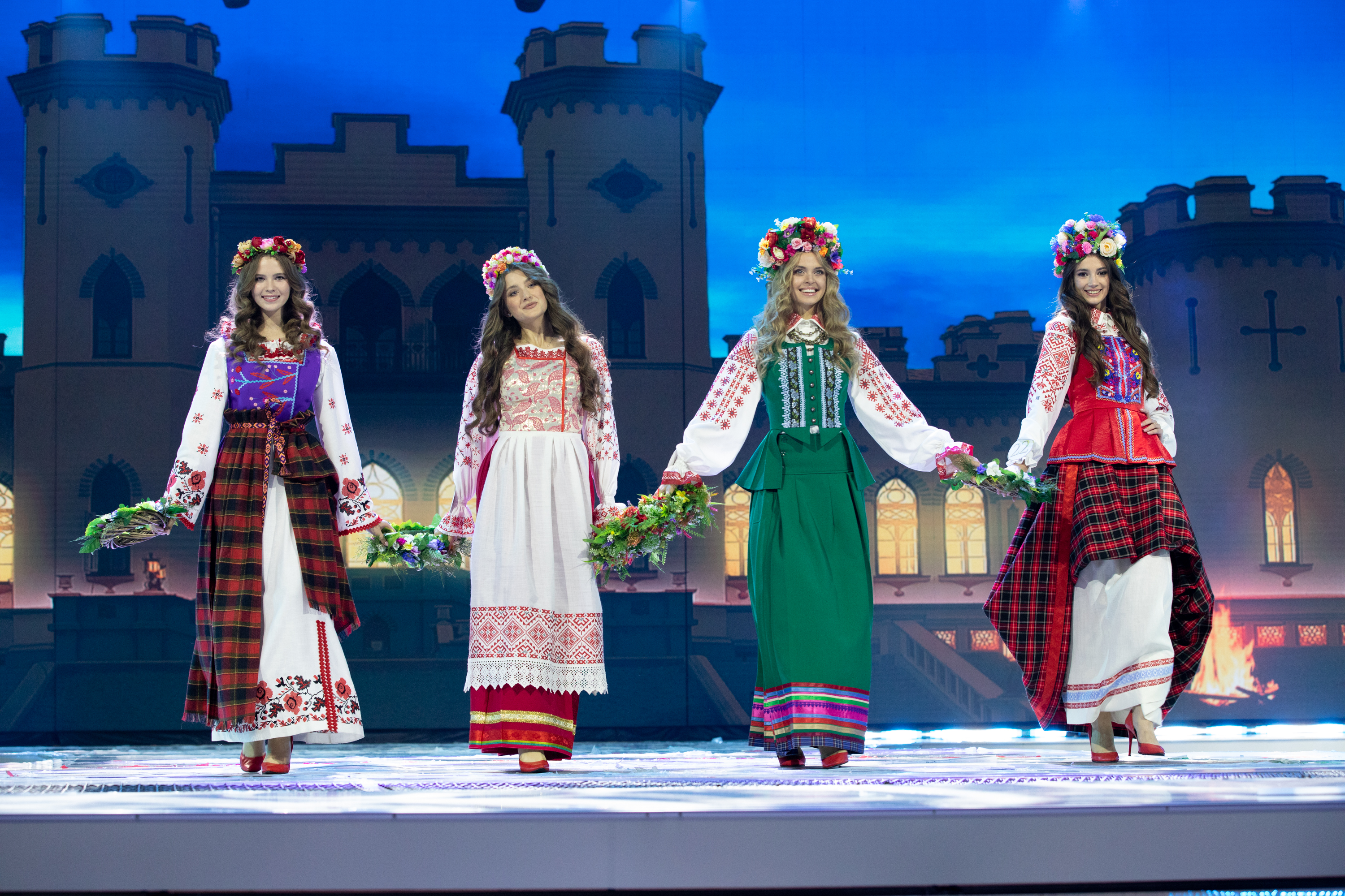 Конкурсантки «Мисс Беларусь» вышли на сцену в национальных нарядах, изготовленных самим Юрием Пискуном.