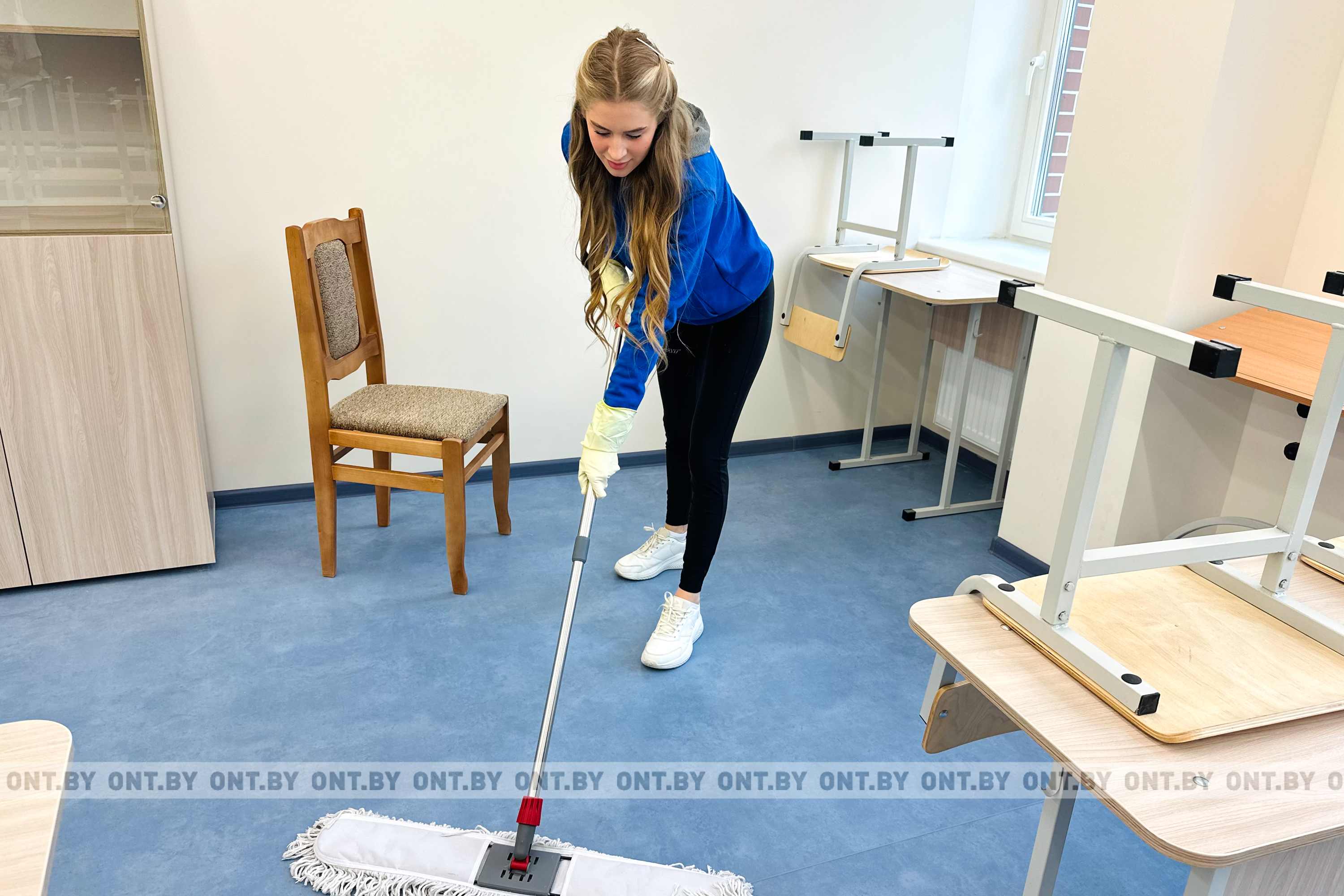 Девушки навели порядок в кабинетах для учеников начальных классов.