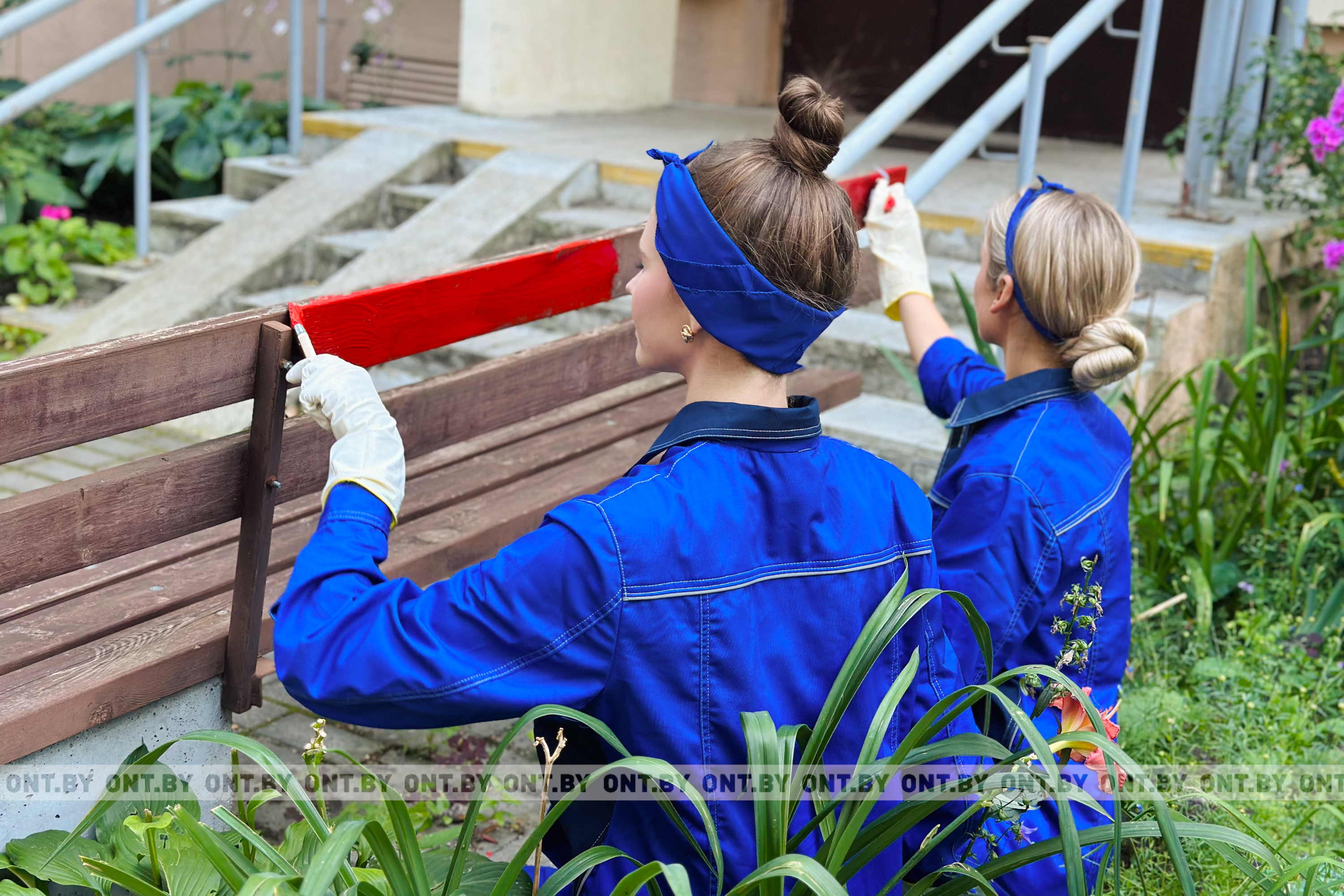 После этого участницы отправились в соседний дворик и принялись за покраску детской площадки и скамеек.