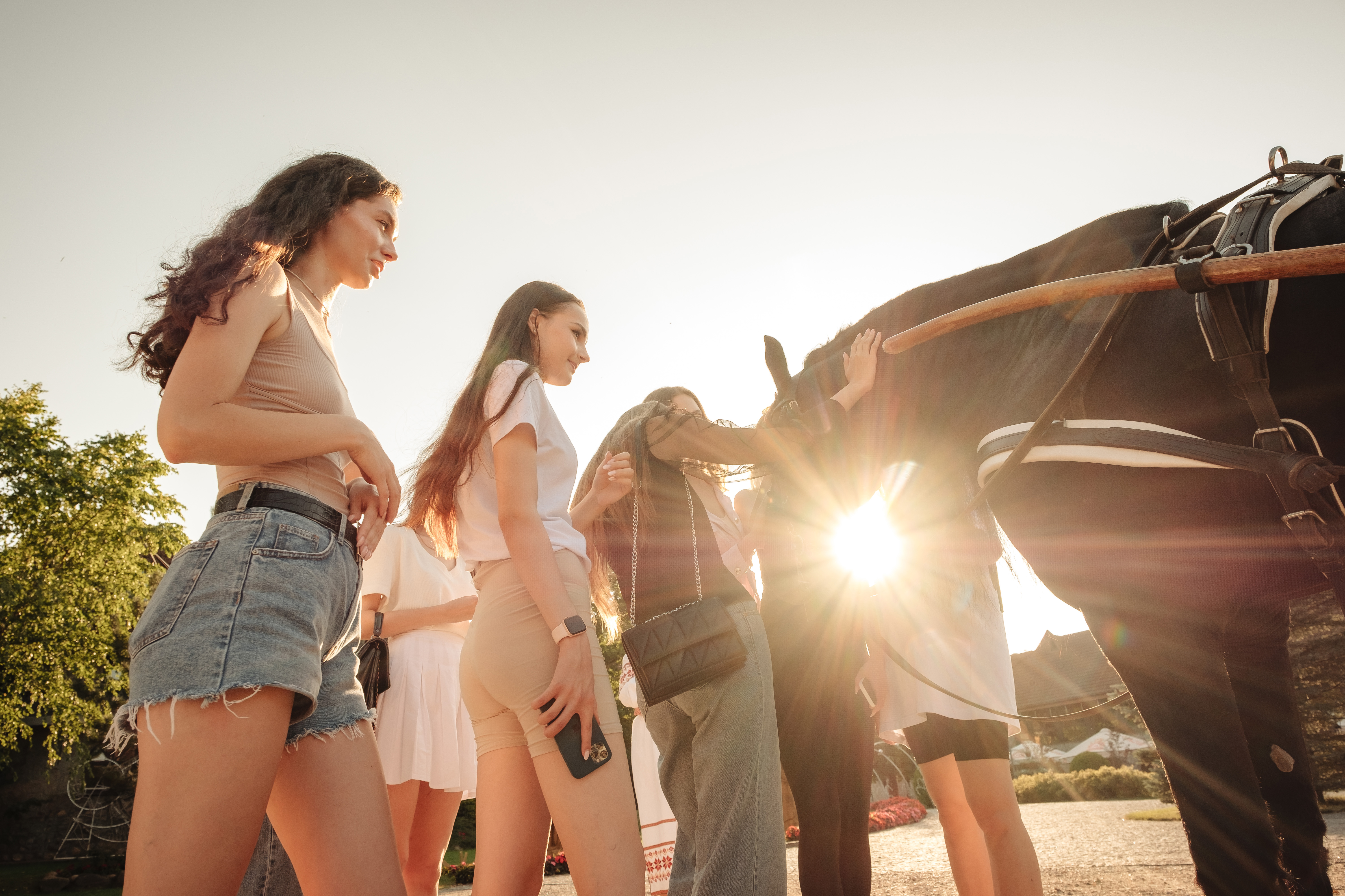 Богиня охоты, двухметровый скакун, заповедный лес. Волшебство в одном месте. Девушки не остались равнодушными и зачарованно смотрели на животных, которых каждый день не встретишь. Хотите тоже окунуться в мистику и получить приятные эмоции? Смотрите фото!