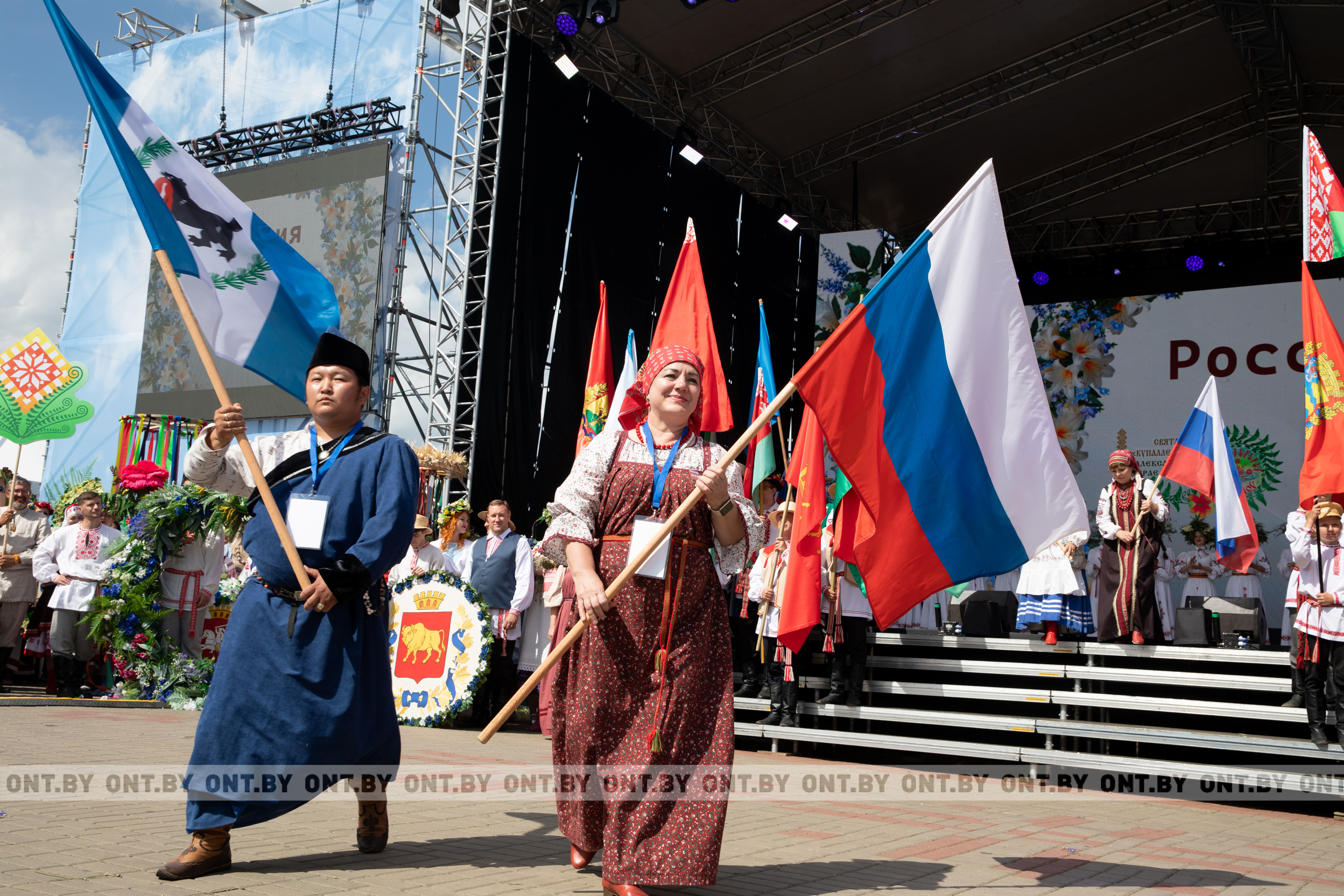 На поле выросла целая улица с торговыми рядами, где представлен настоящий купальский кирмаш. Глаза разбегаются от обилия товаров: белорусская керамика, соломоплетение, лозоплетение и многое другое. Умельцы приехали со всех уголков Беларуси, регионов Российской Федерации и из других стран.