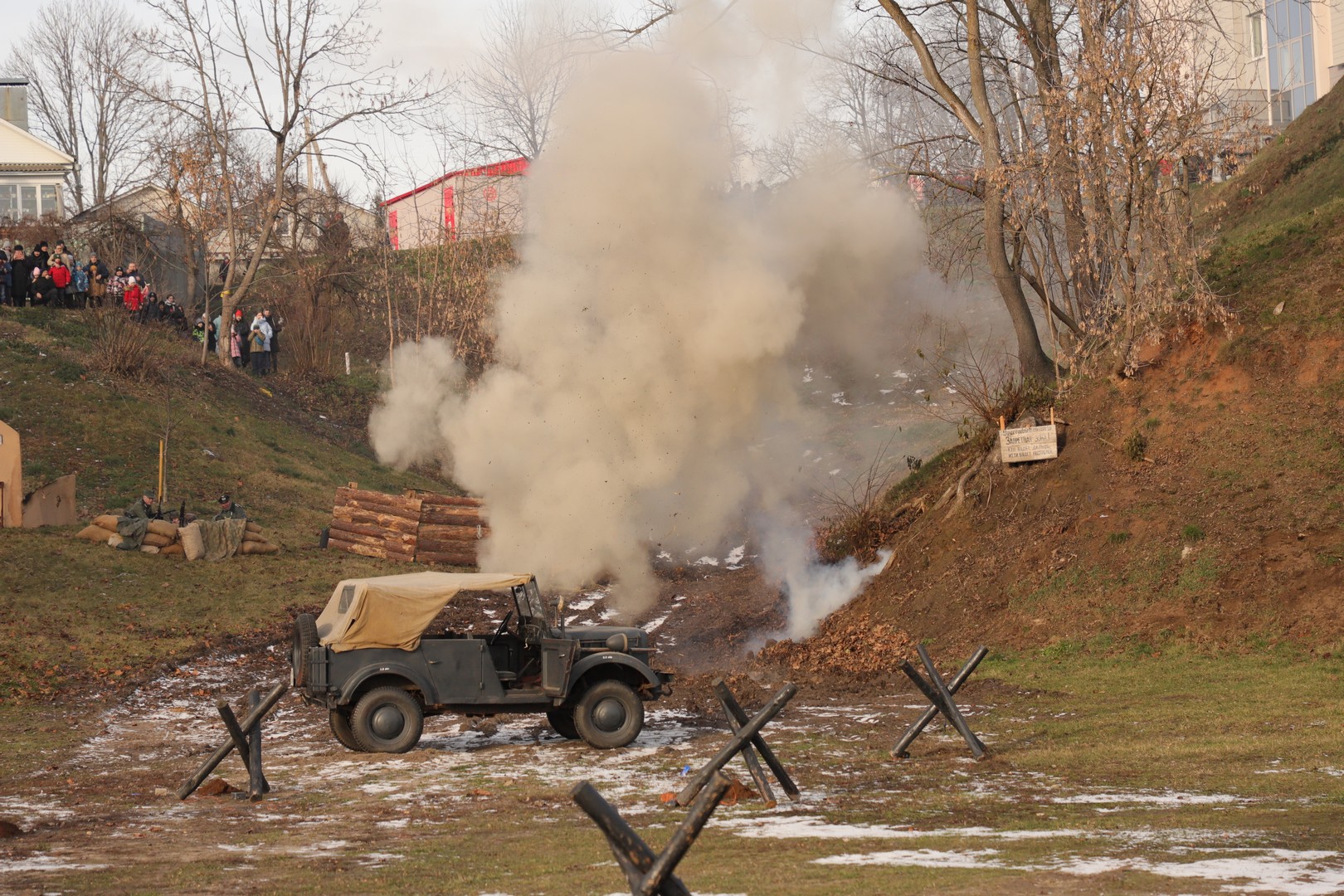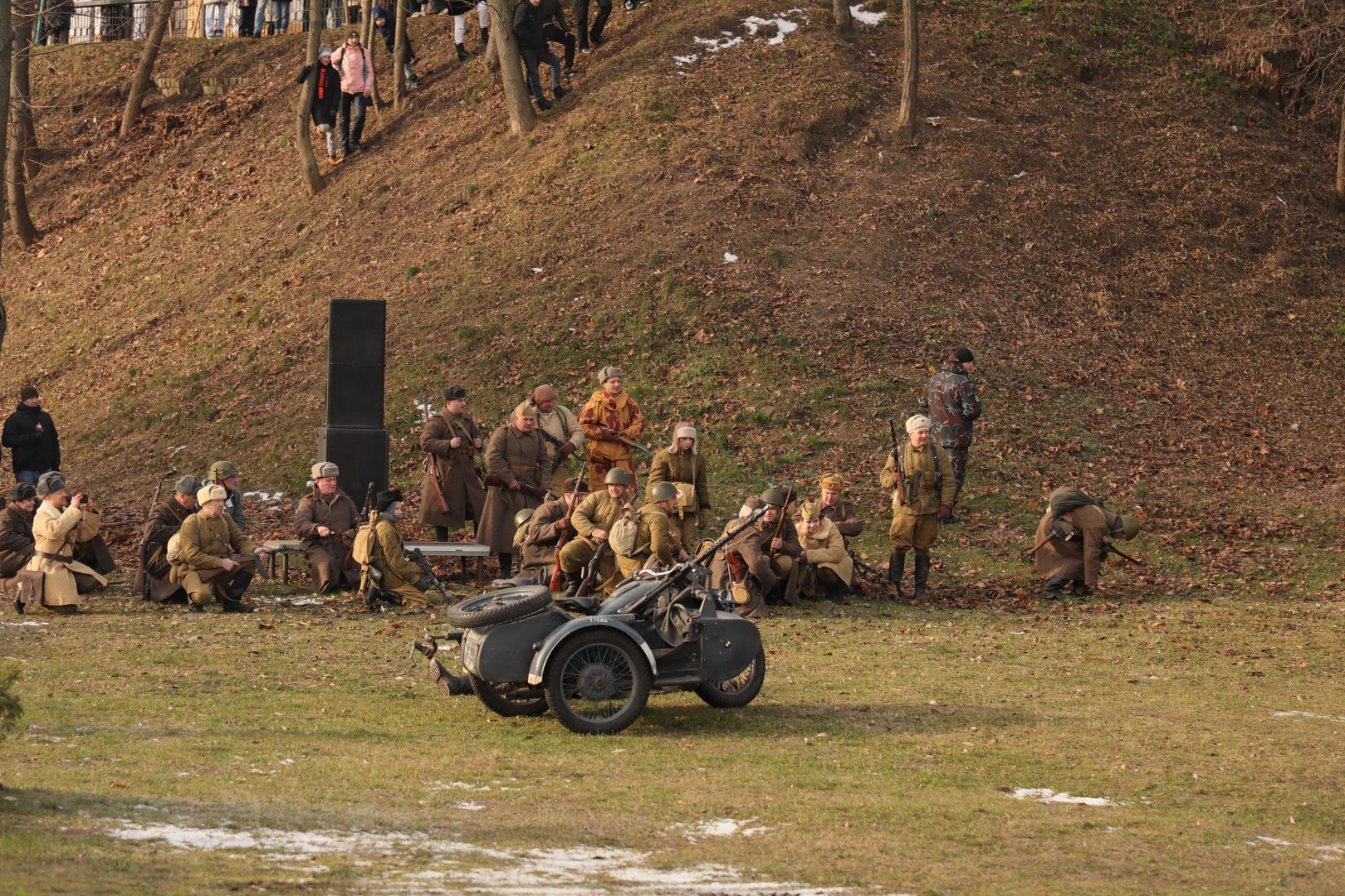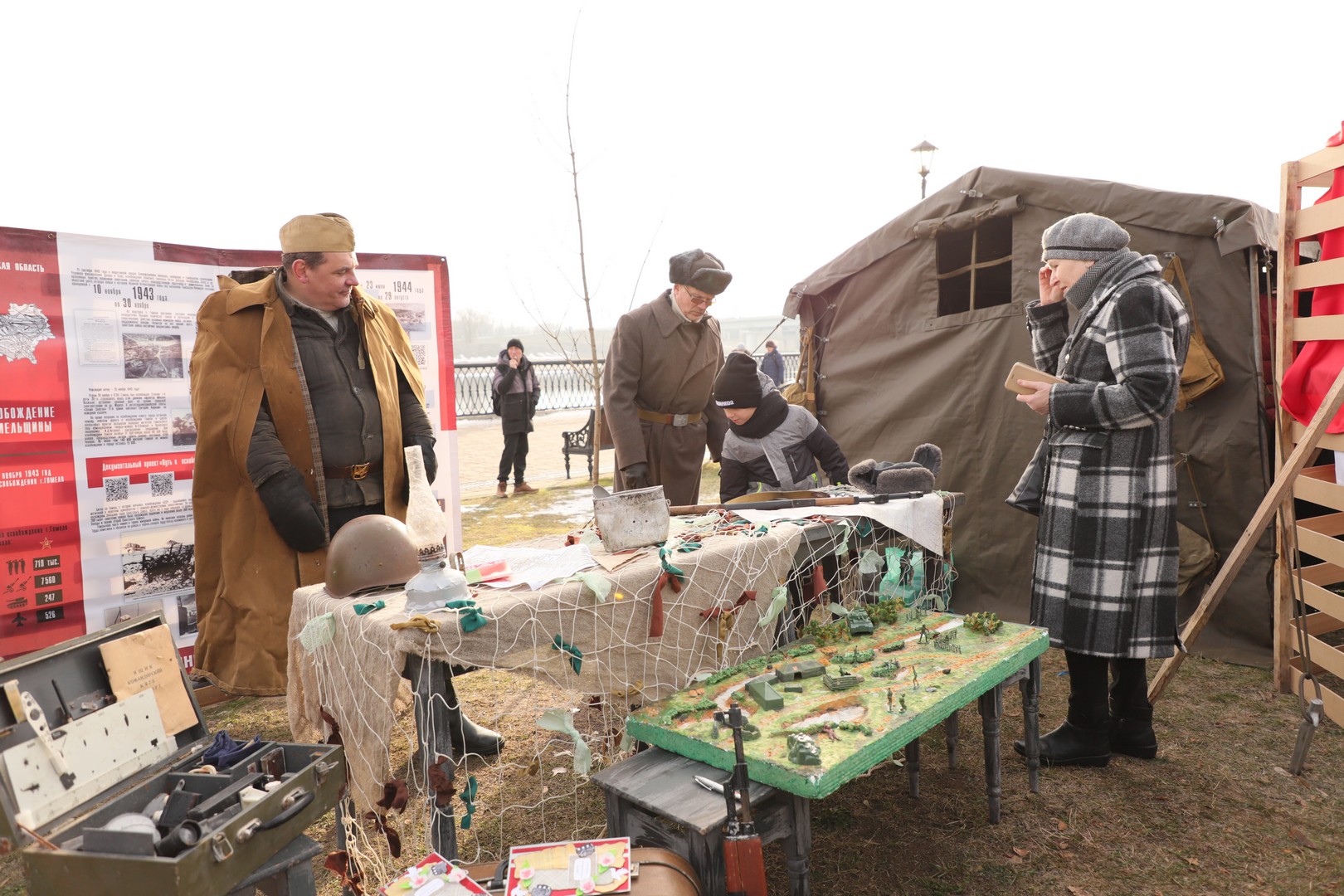 Помимо реконструкции, была организована экспозиция военной техники, а также, незадолго до праздника, на ограждении парка была размещена фотовыставка «80 лет мира и созидания».