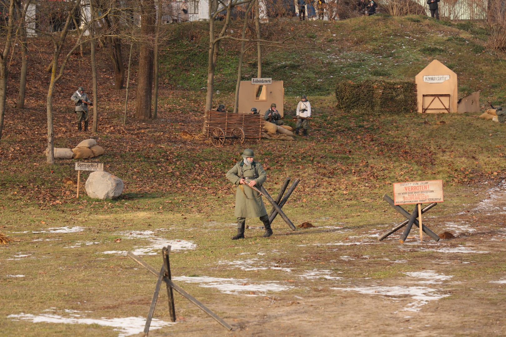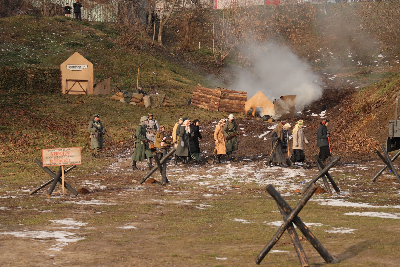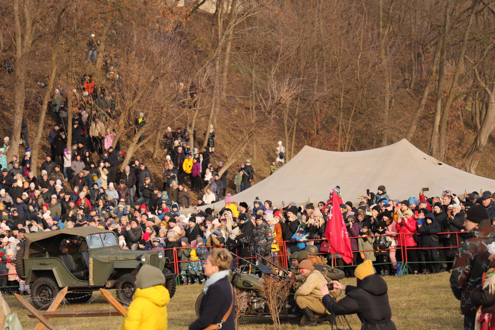 Помимо реконструкции, была организована экспозиция военной техники, а также, незадолго до праздника, на ограждении парка была размещена фотовыставка «80 лет мира и созидания».