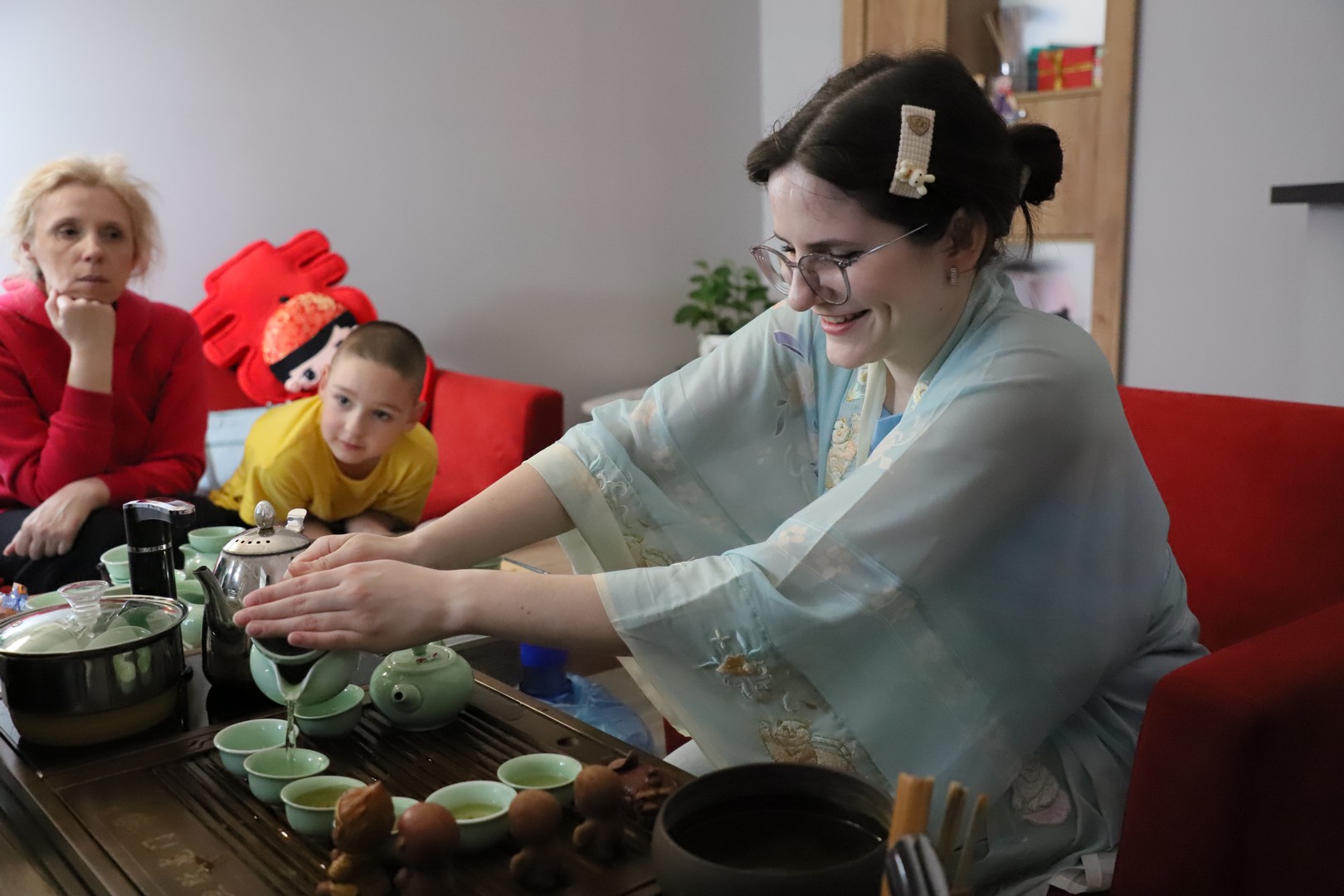 Далее каждый мог выбрать себе занятие по вкусу. Среди вариантов были чайная церемония, практика китайского языка, занятия по кунг-фу, китайские шахматы, загадки и игры.
