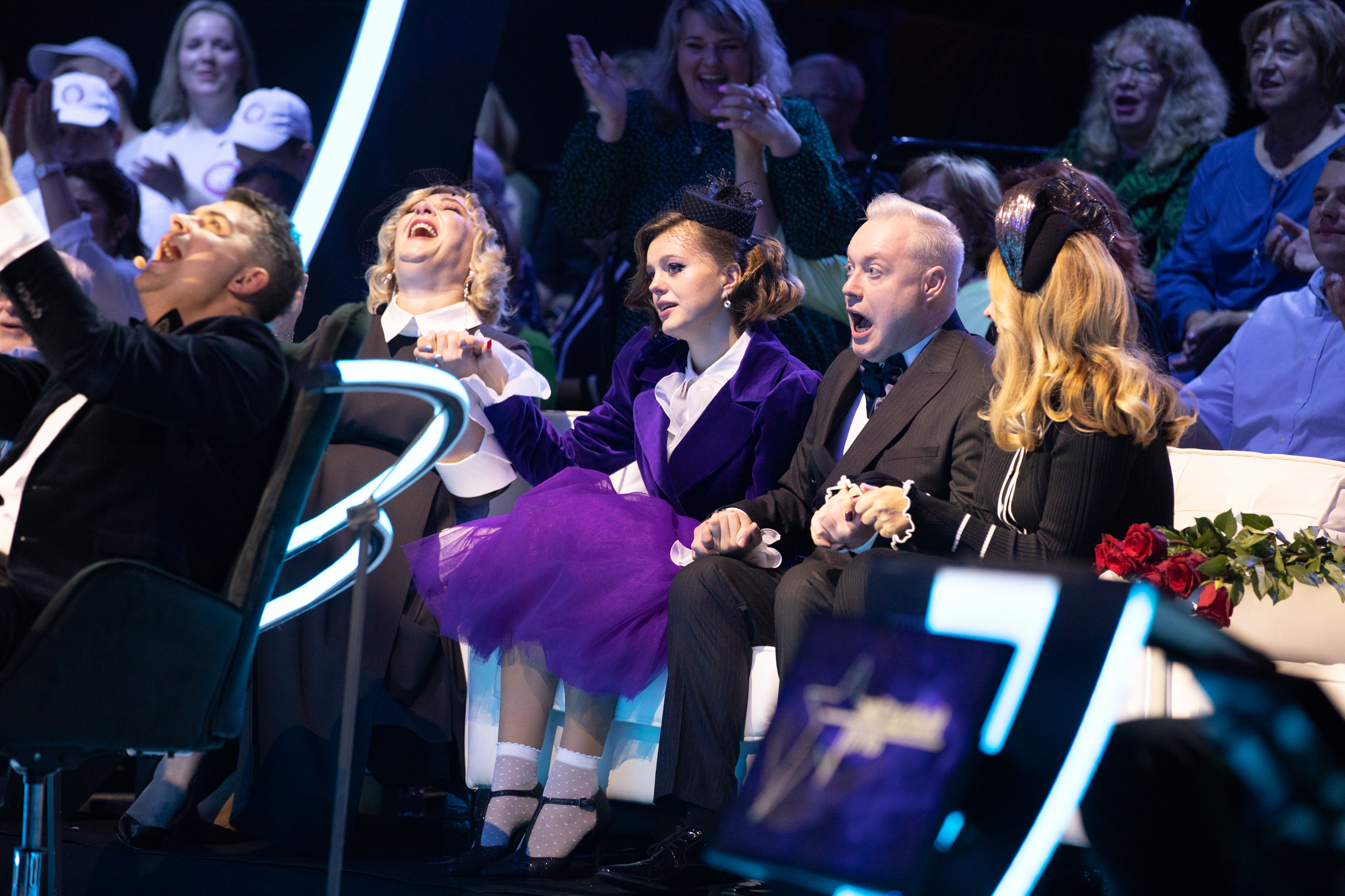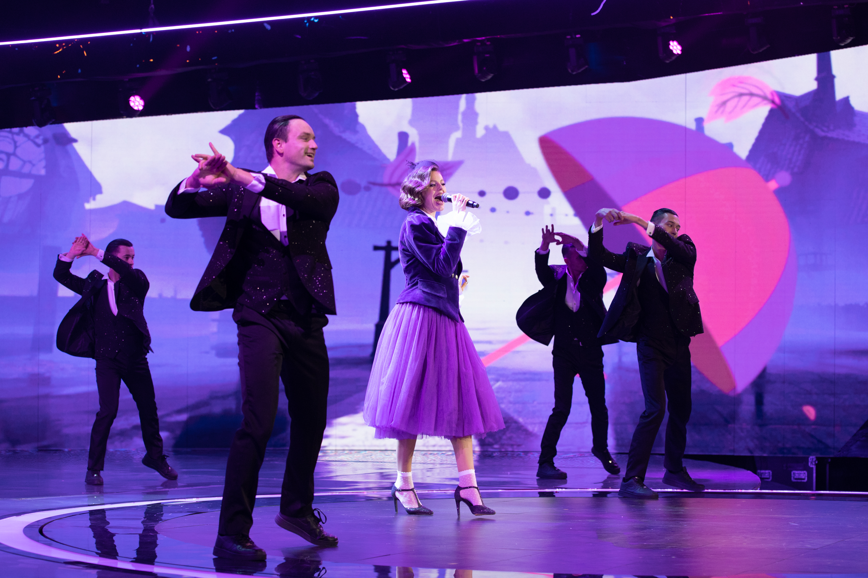 Открыла шоу Анастасия Архиреева со знаменитой песней «Леди совершенство». Кстати, наряд вокалистки как нельзя лучше подчеркнул композицию. От туфелек до шапки элегантна сама, к выступлению годна, яркий номер подчеркнула она! Остался ли доволен выступлением Андрей Гузель? Смотрите в видео!