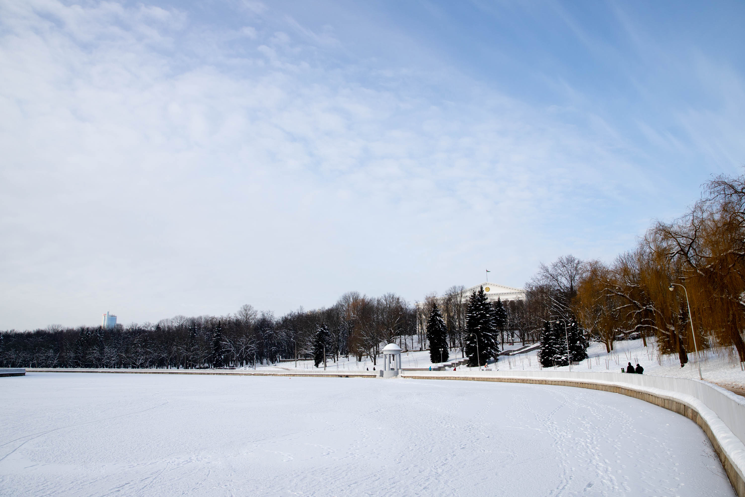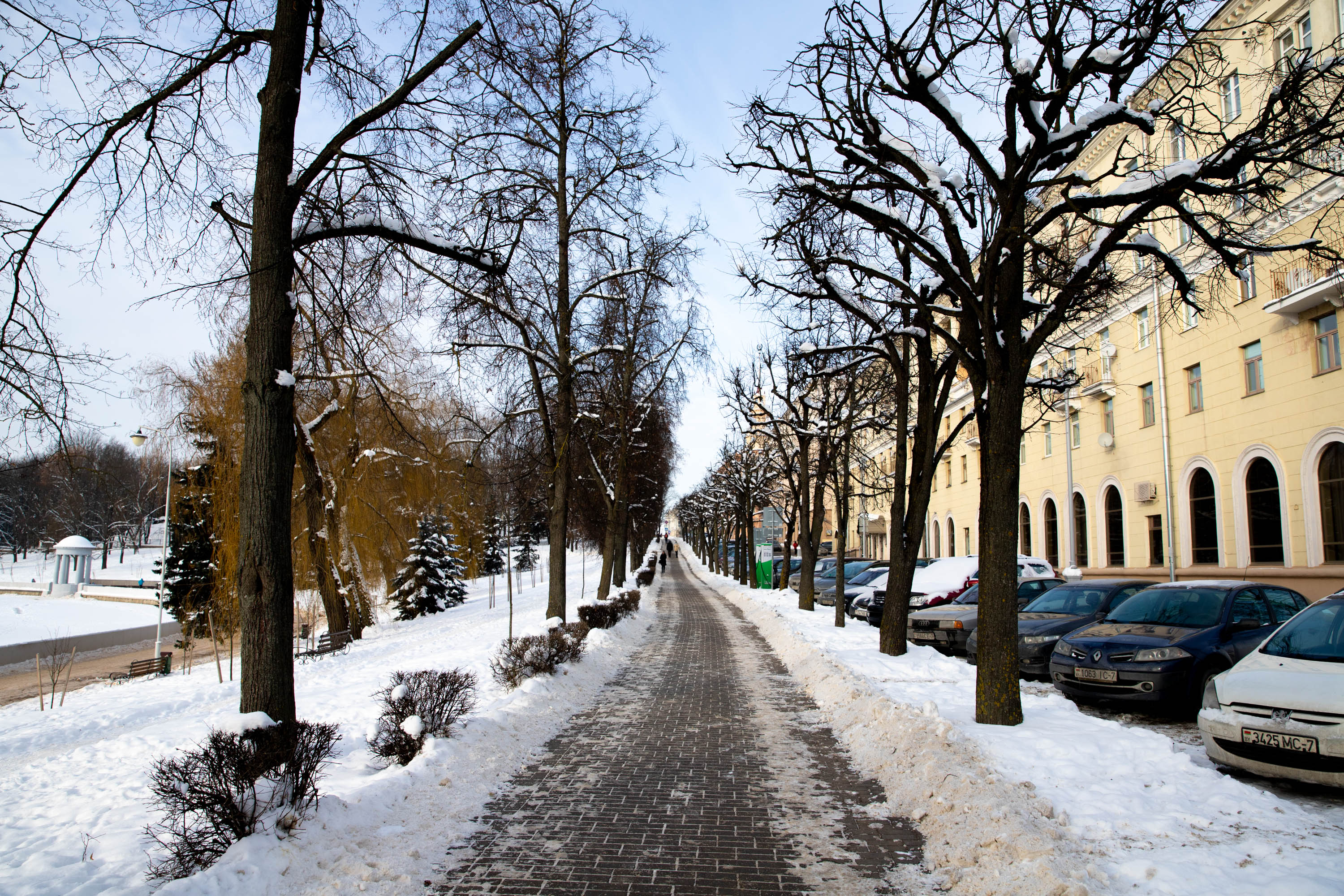 С завтрашнего дня наступит потепление – столбик термометра в Минске поднимется до +1°C, а снег начнет таять. Мы успели застать последний морозный день и прогулялись по заснеженному Минску.