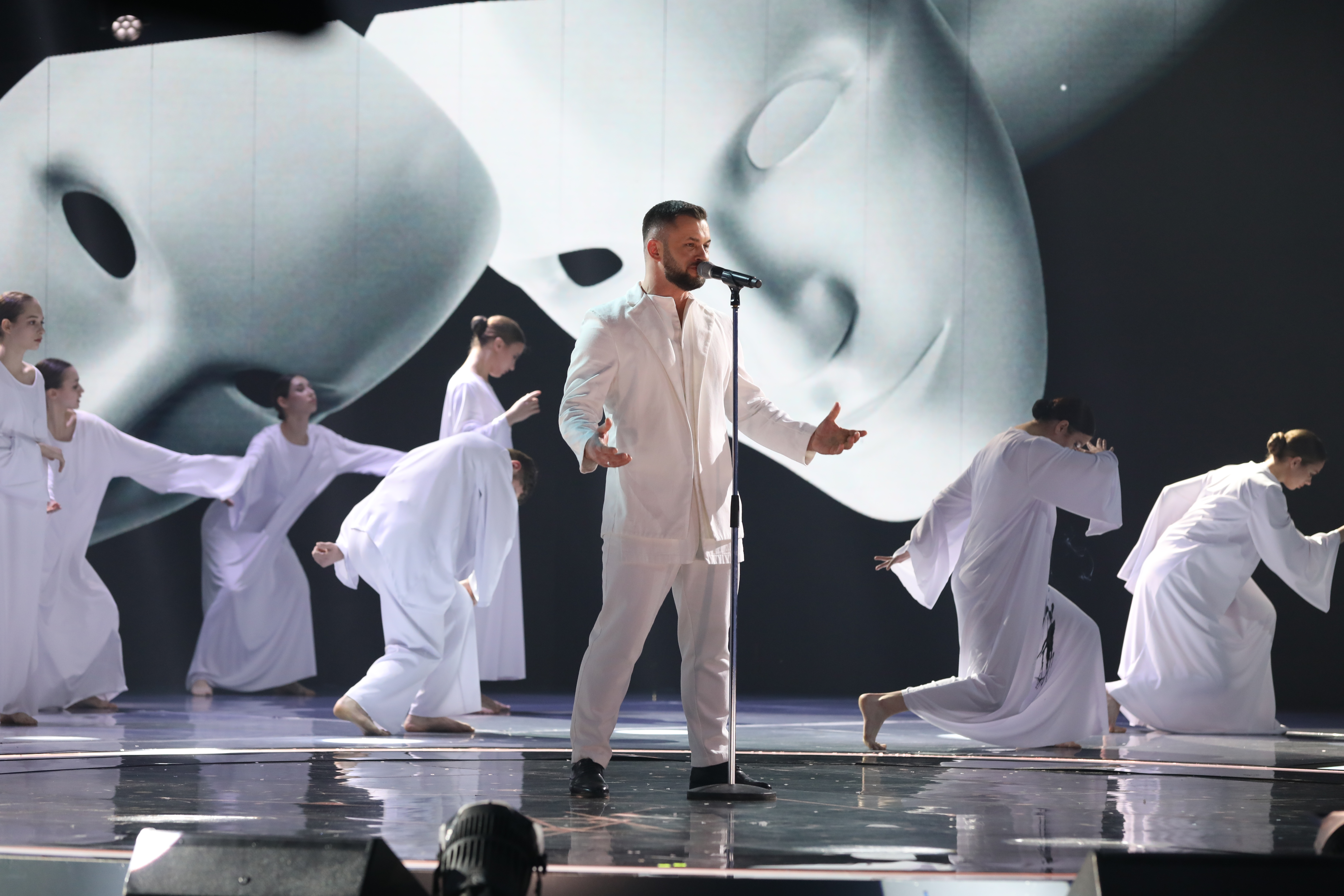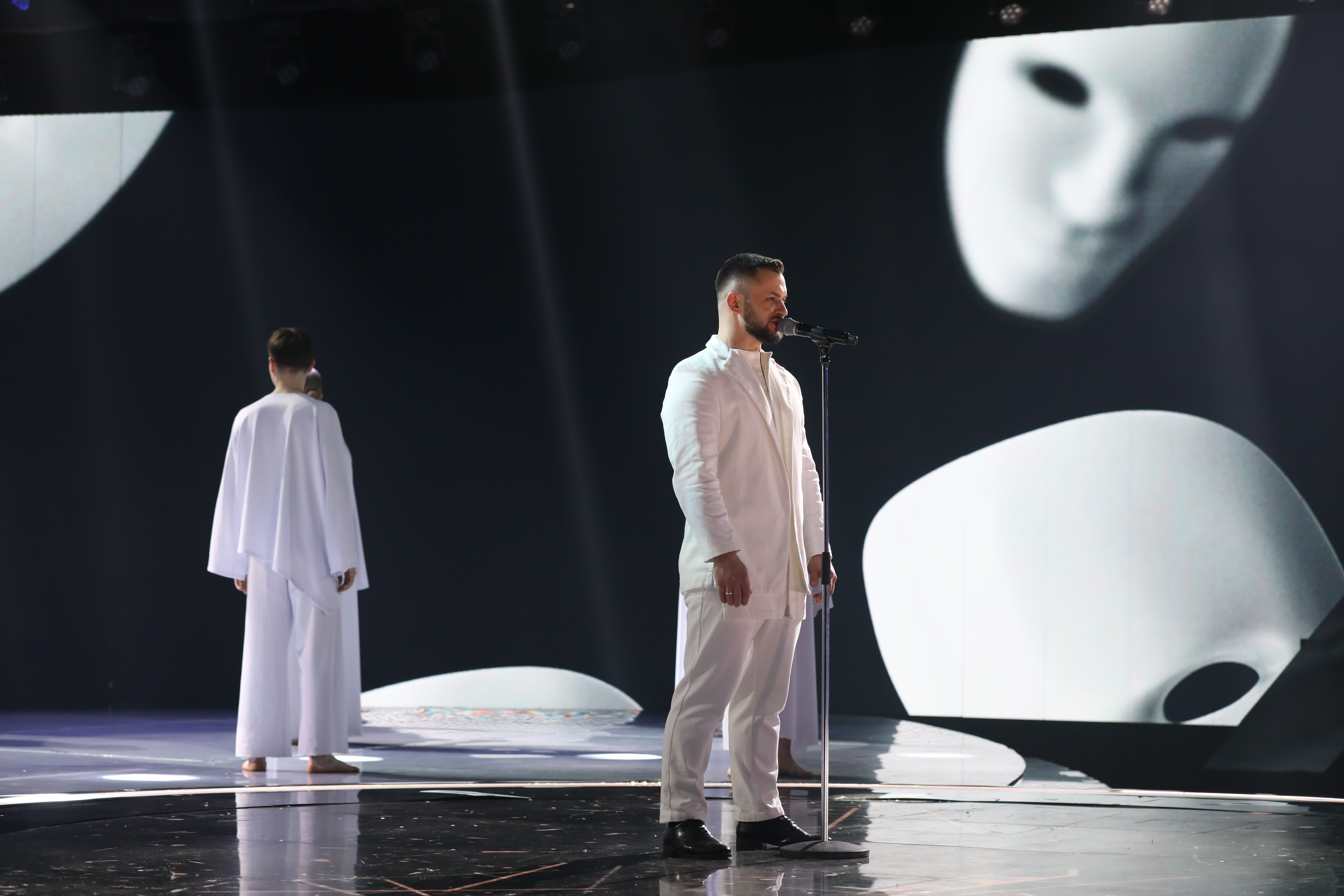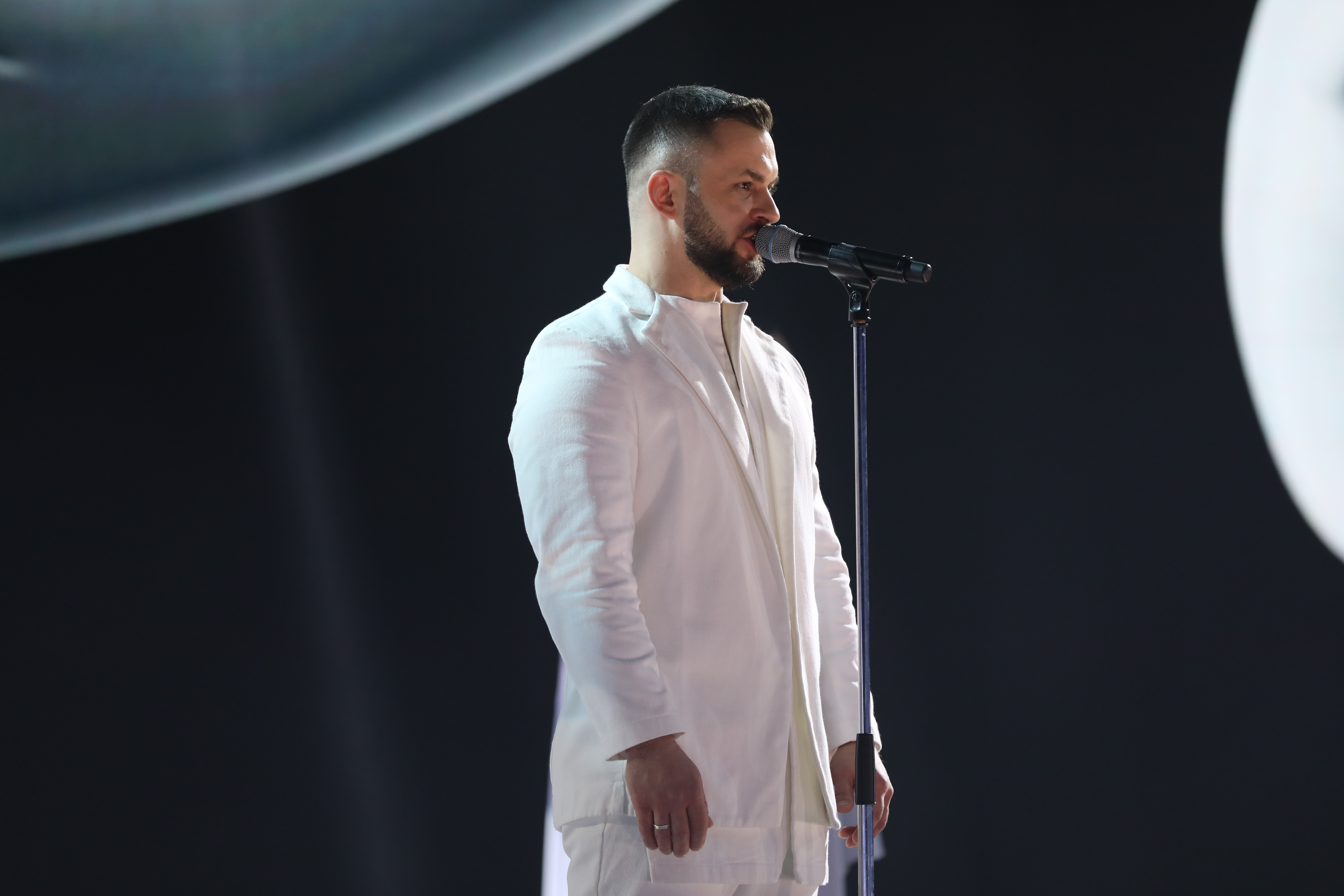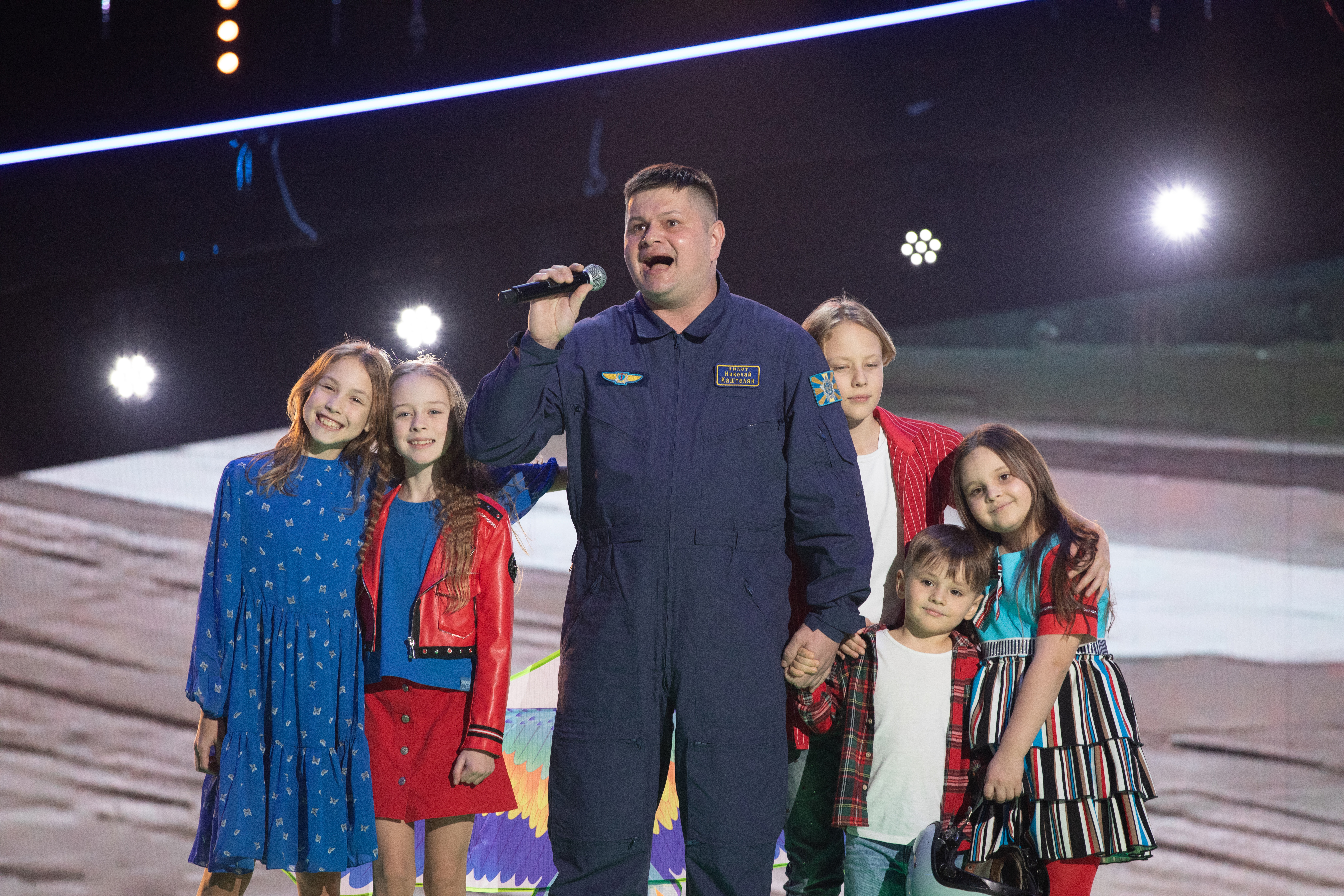 Первым на сцену вышел Василий Ларченко из команды Александра Лавриновича. Он выступил с песней «Под единым небом». Трогательный и проникновенный номер!