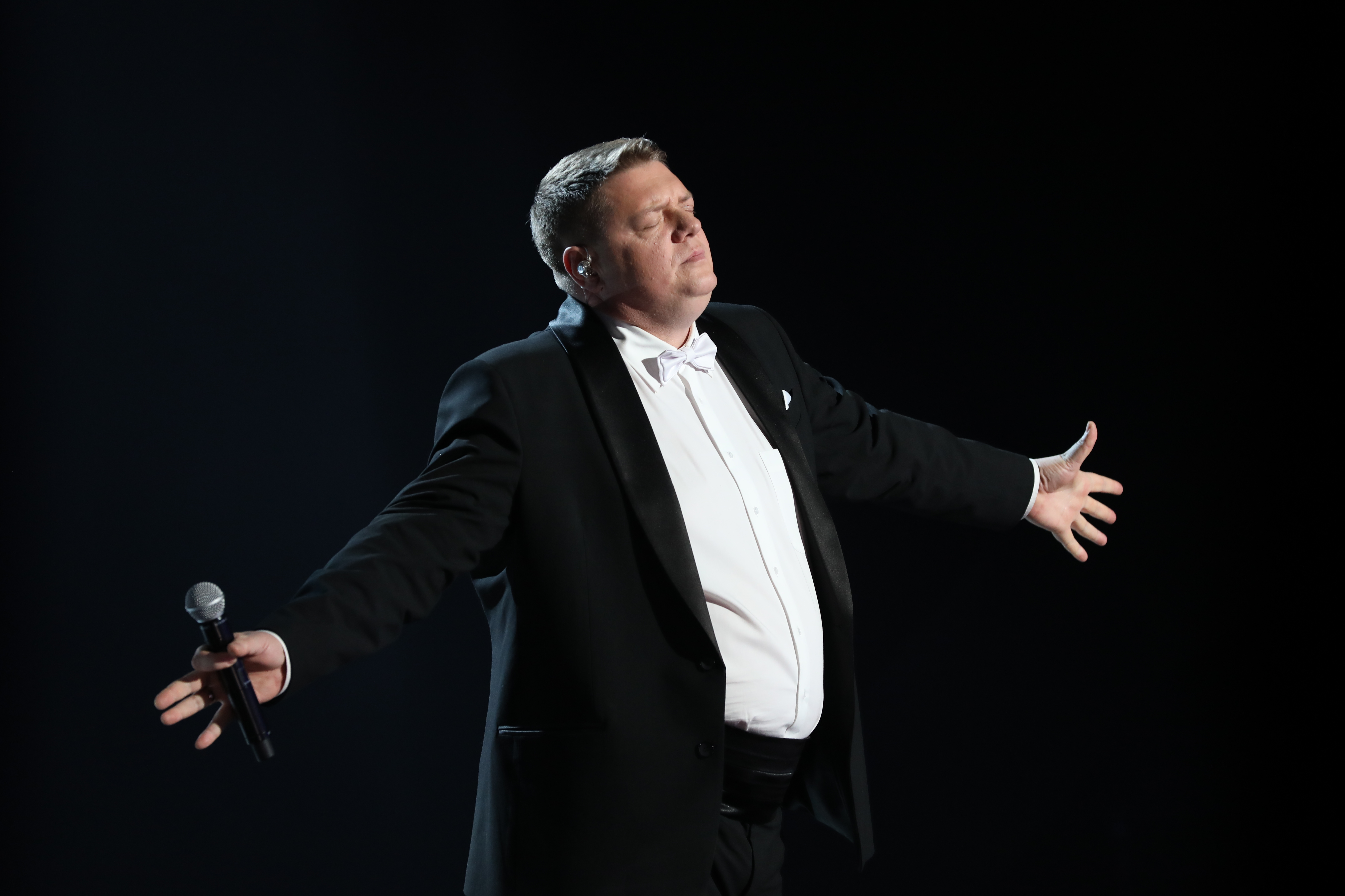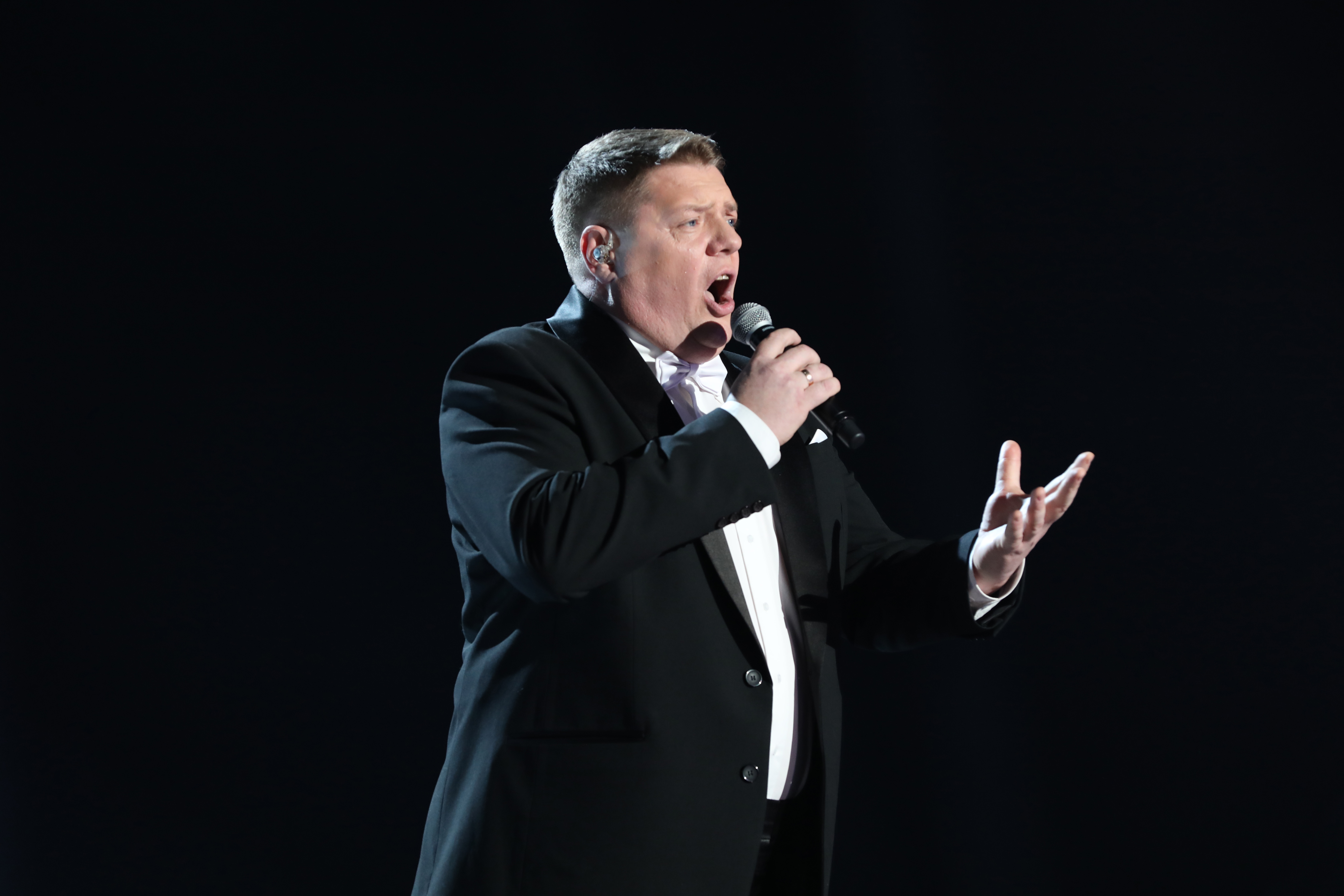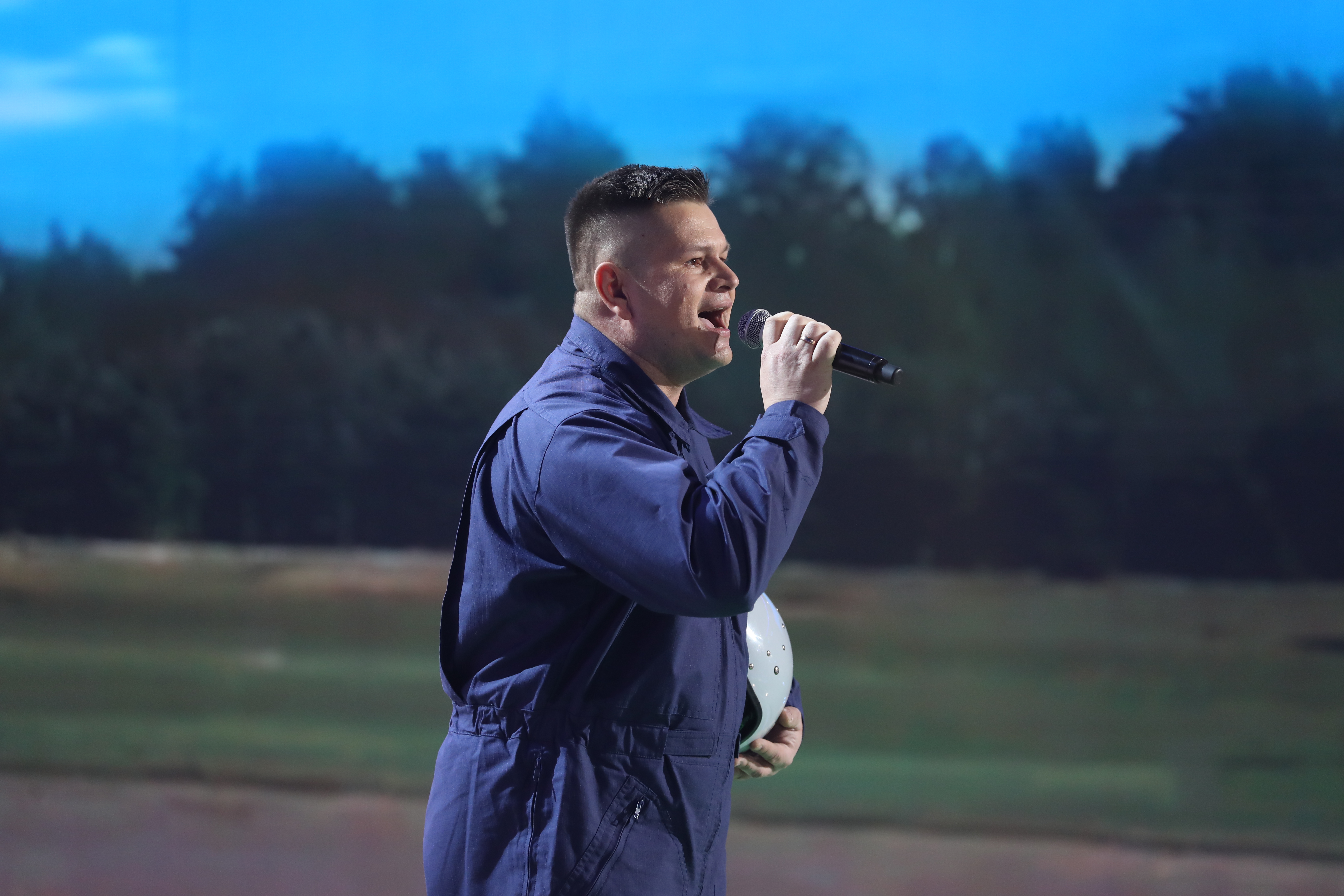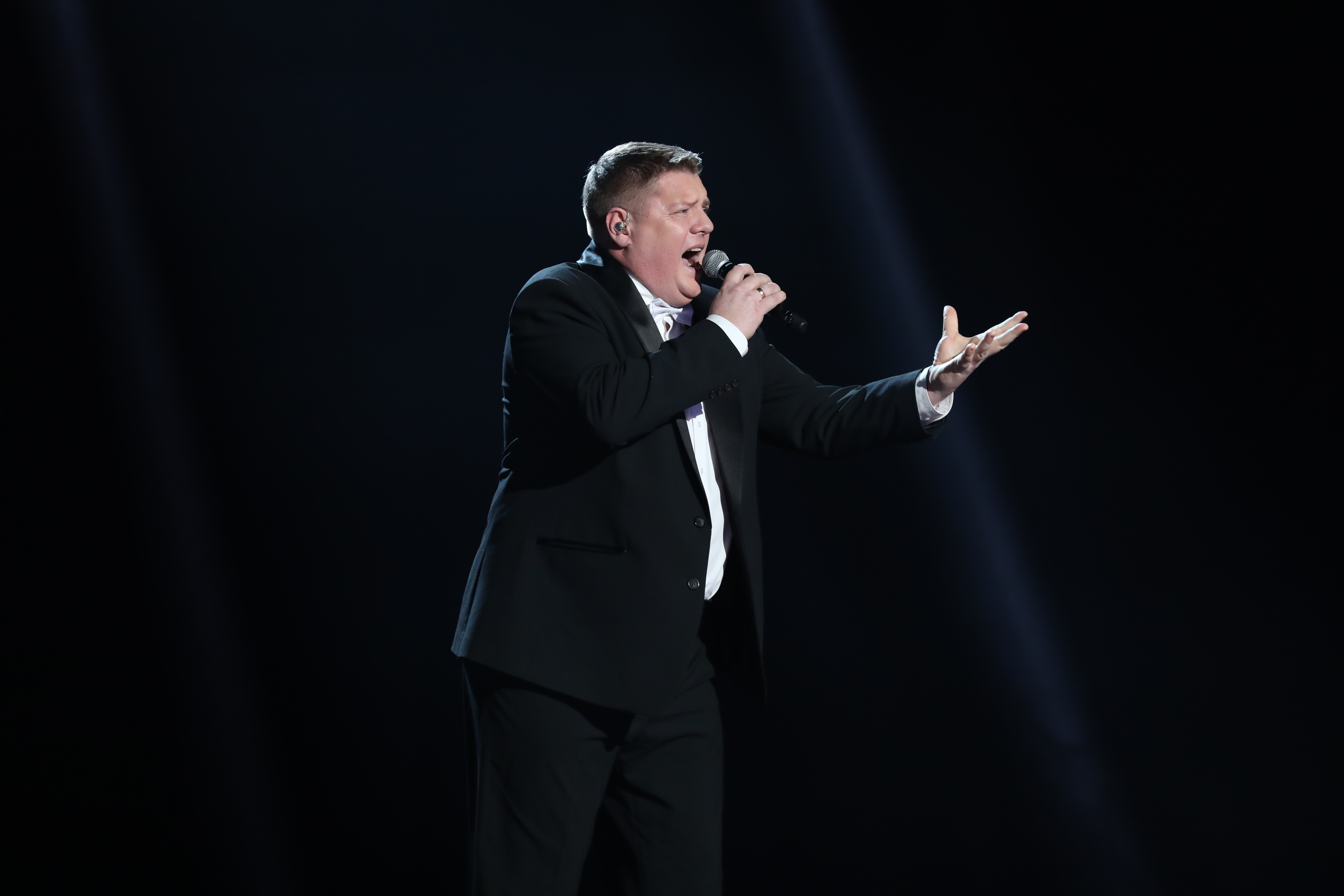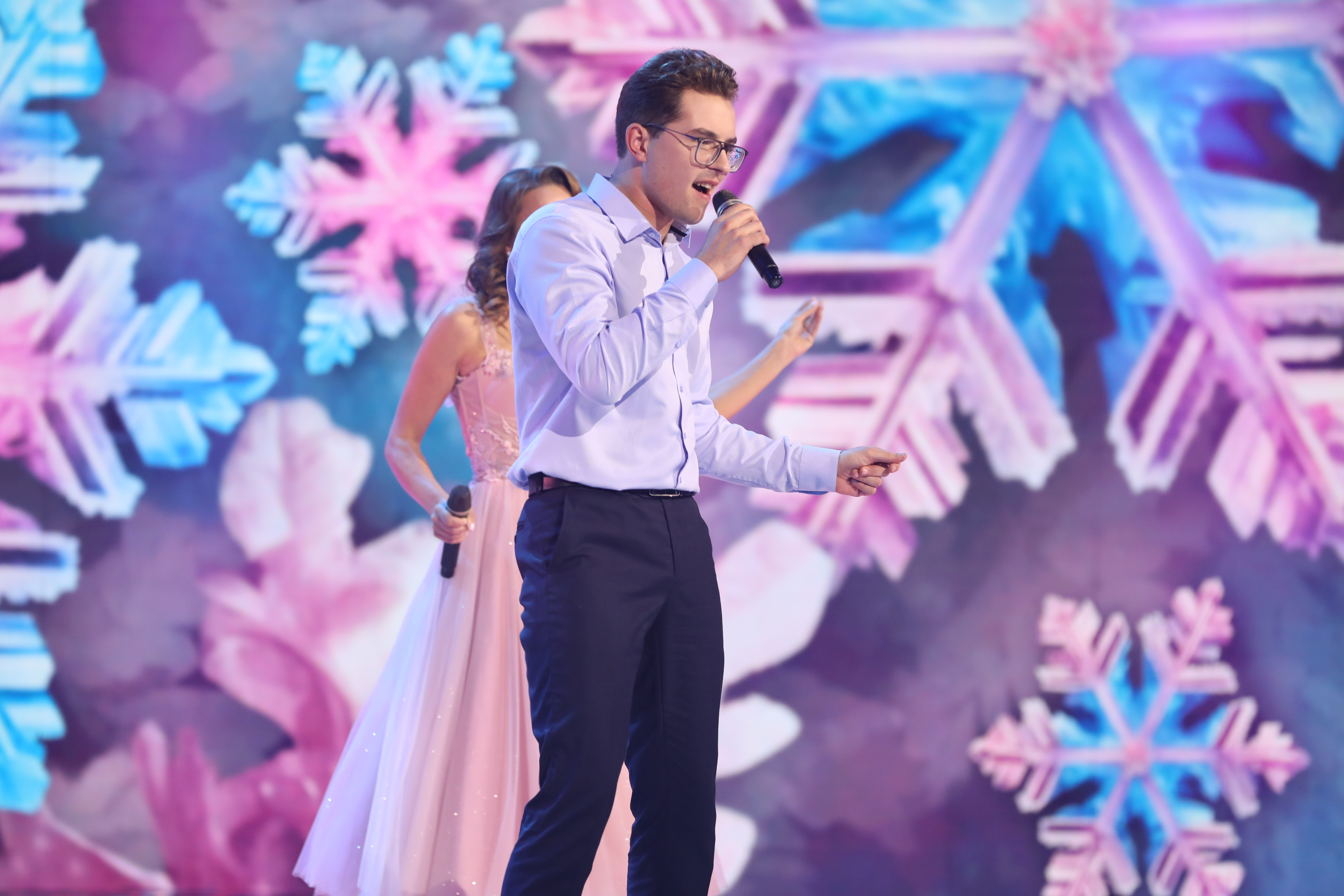 Первым на сцену вышел Василий Ларченко из команды Александра Лавриновича. Он выступил с песней «Под единым небом». Трогательный и проникновенный номер!