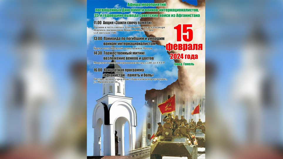 Гомельчане почтят память воинов-интернационалистов. Программа мероприятий на 15 февраля