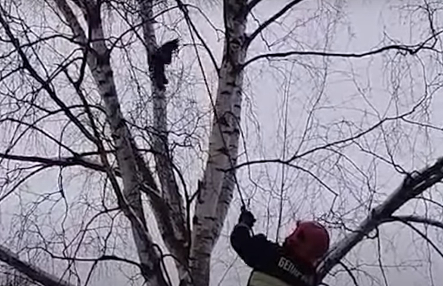Гомельские спасатели помогли вороне, которая застряла в ветках дерева