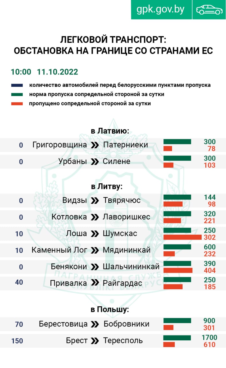 Въезда в Польшу в сопредельных погранпереходах «Бобровники» («Берестовица») и «Тересполь» («Брест») ожидал легковой транспорт. Всего польская сторона оформила 34% авто от нормы.